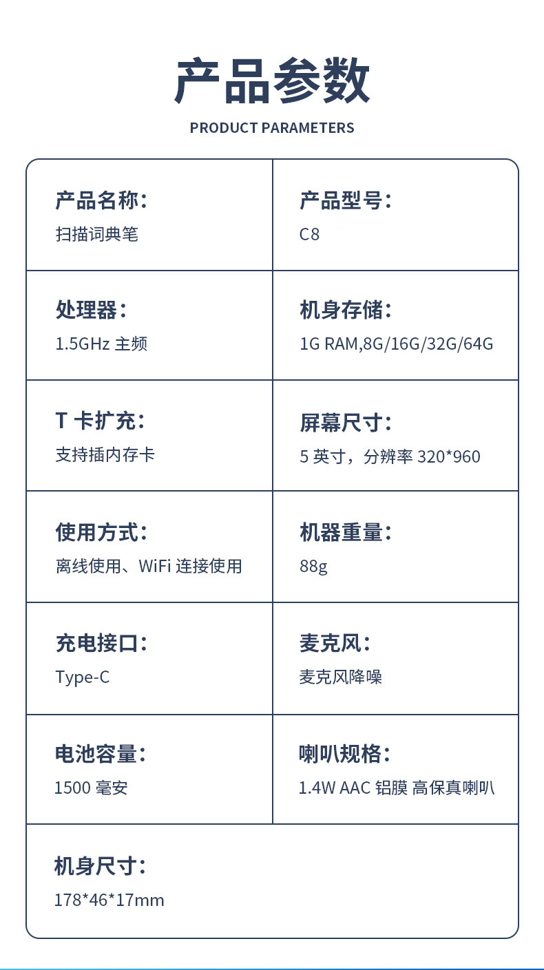 商品名称:【京东/顺丰配送】墨小客智能扫描翻译词典笔C8