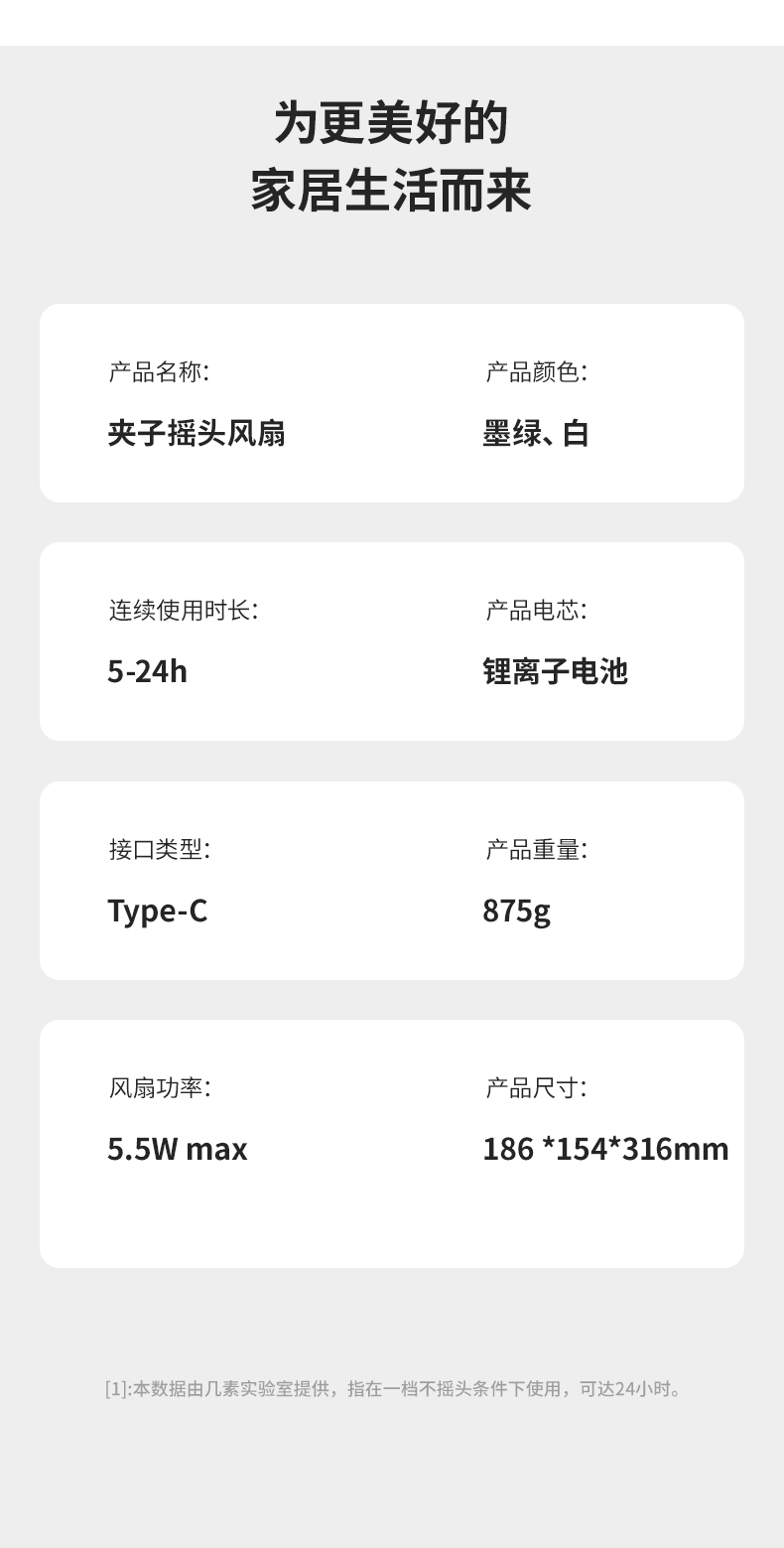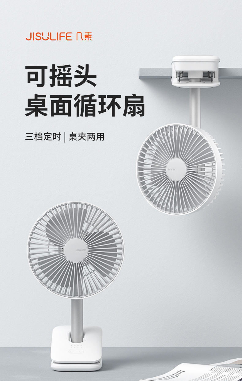 商品名称:JISULIFE/几素桌面夹子可摇头风扇FA13R