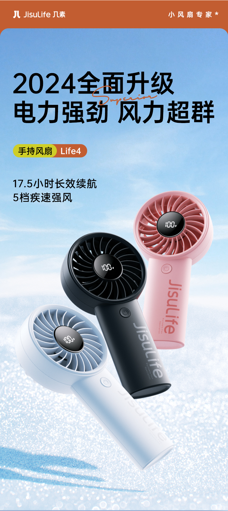 【京东/顺丰/德邦配送】JISULIFE/几素5000mAh手持小风扇Handheld Fan Life4