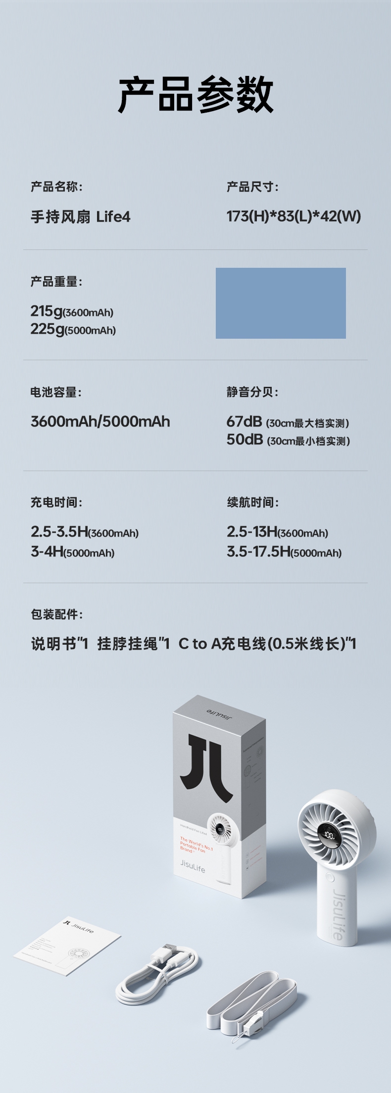 商品名称:【京东/顺丰/德邦配送】JISULIFE/几素5000mAh手持小风扇Handheld Fan Life4