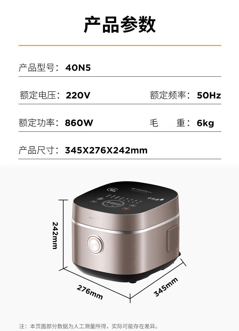 商品名称:Joyoung/九阳4升0涂层电饭煲40N5