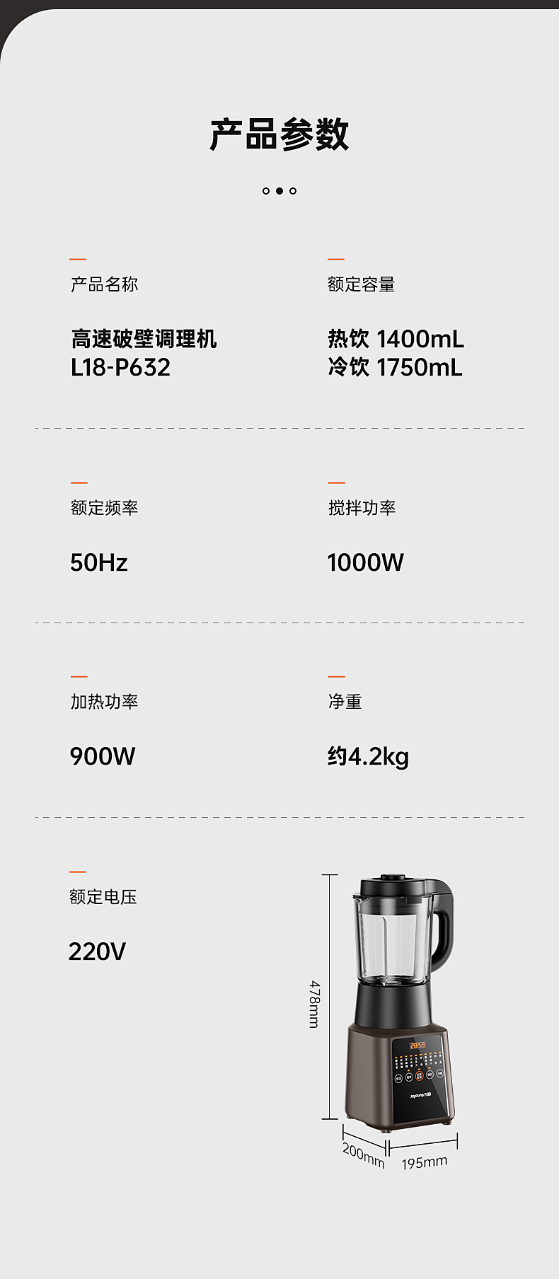 商品名称:Joyoung/九阳升级款1.75升破壁机L18-P632