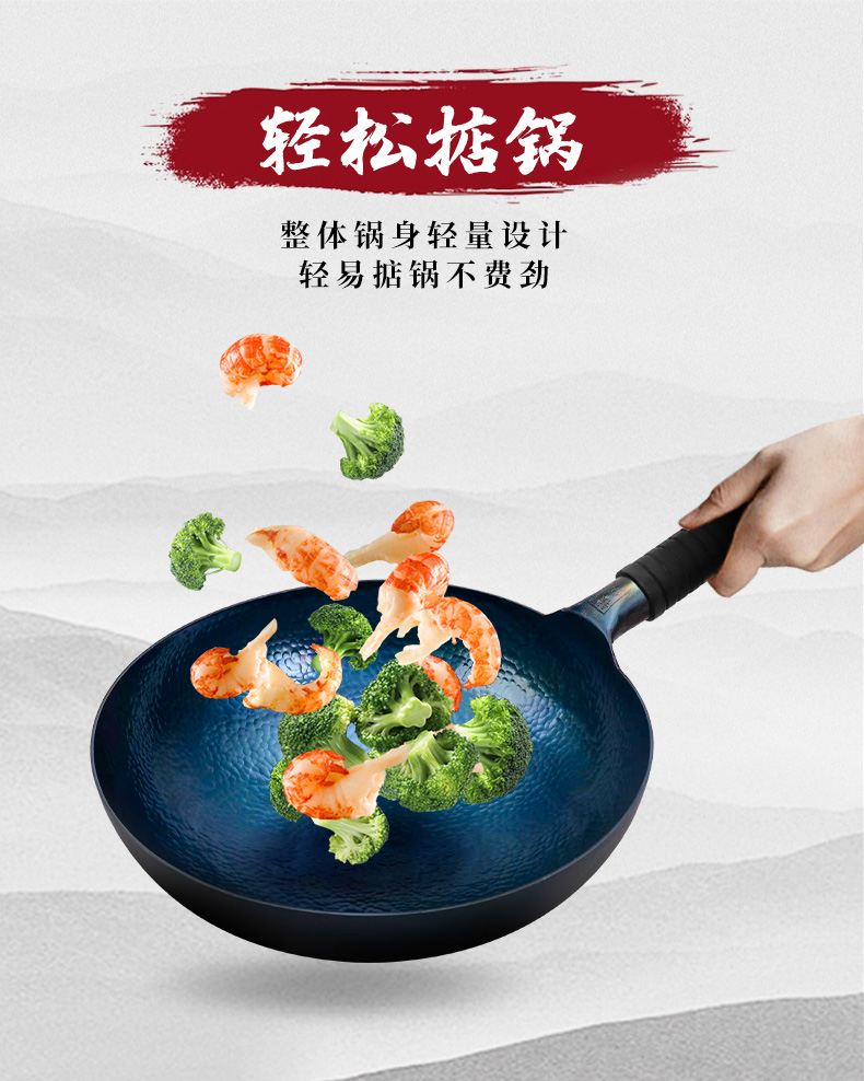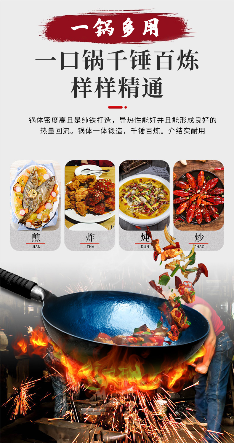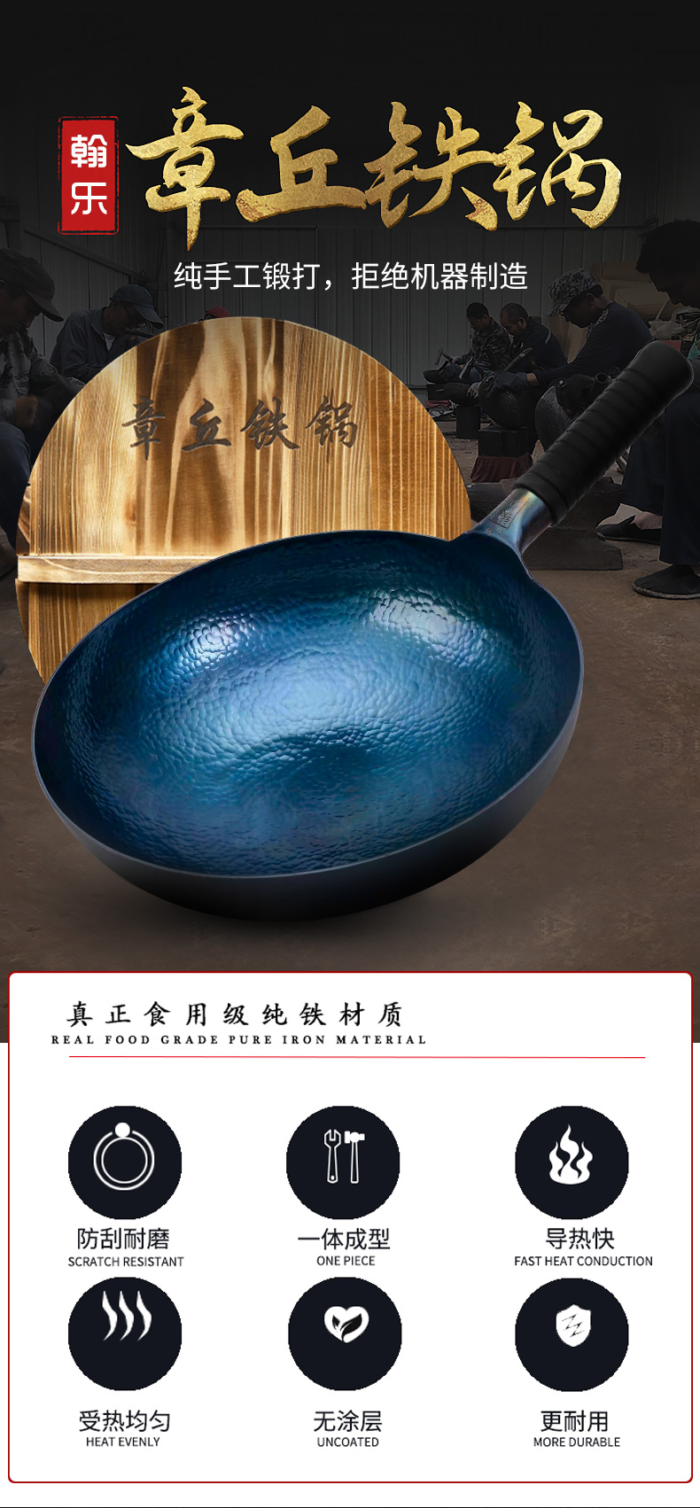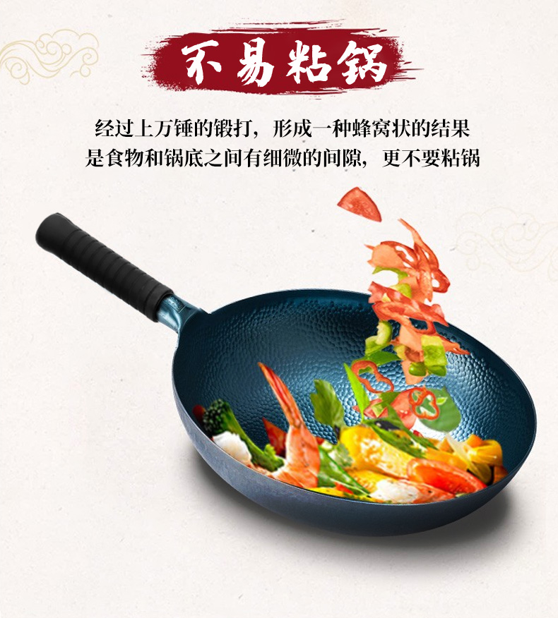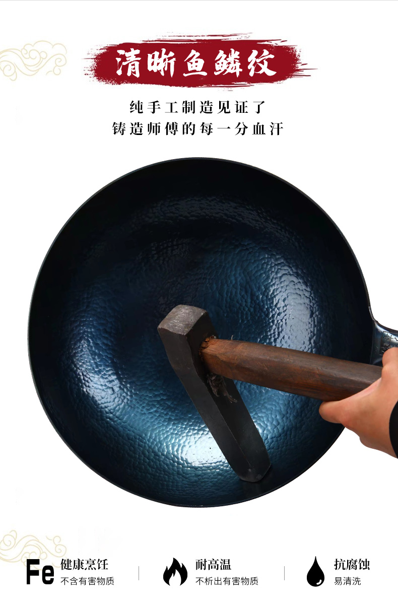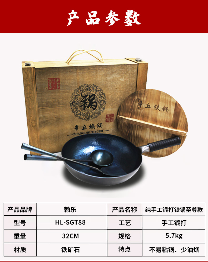 商品名称:hanle/翰乐32cm章丘纯手工锻打铁锅至尊款HL-SGT88