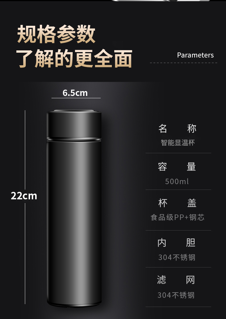 商品名称:hanle/翰乐500毫升智能显温保温杯