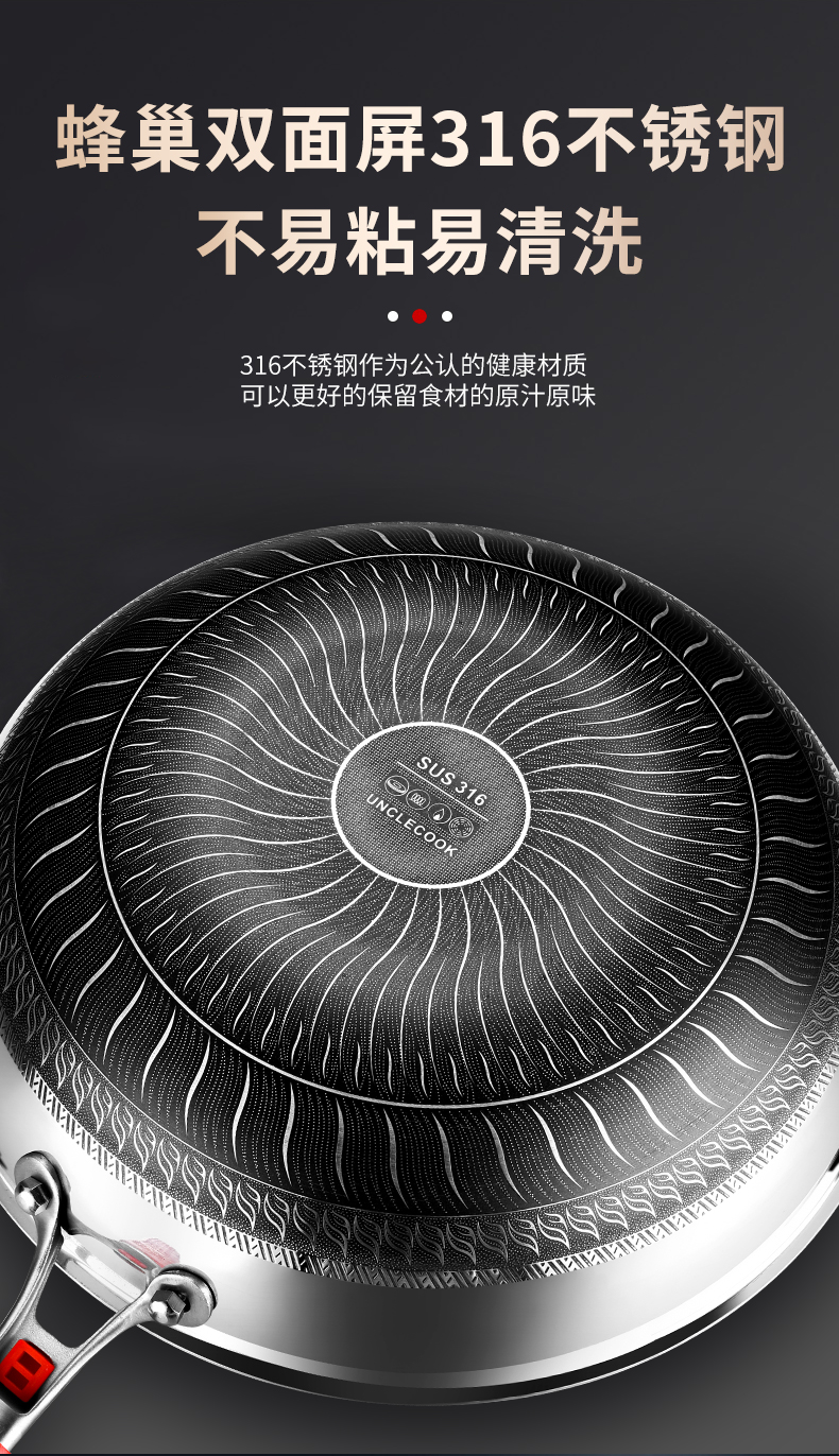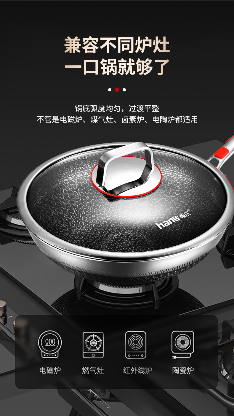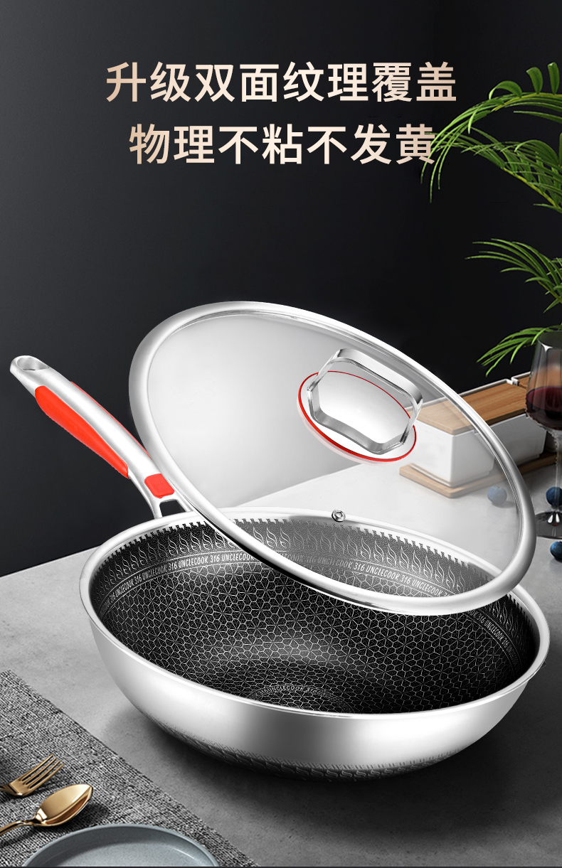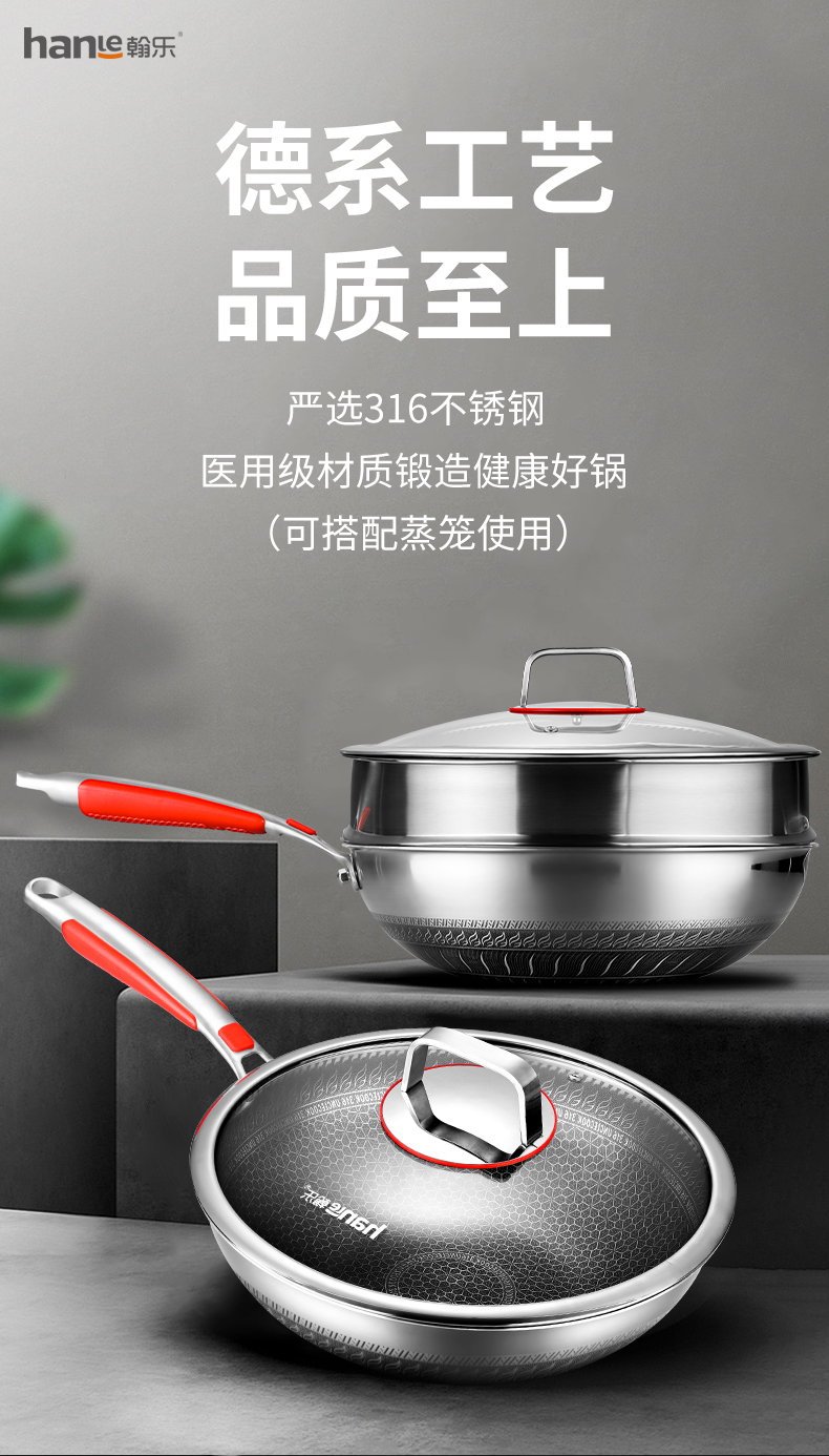 hanle/翰乐32cm双面屏316不锈钢炒锅实惠款HL-F01