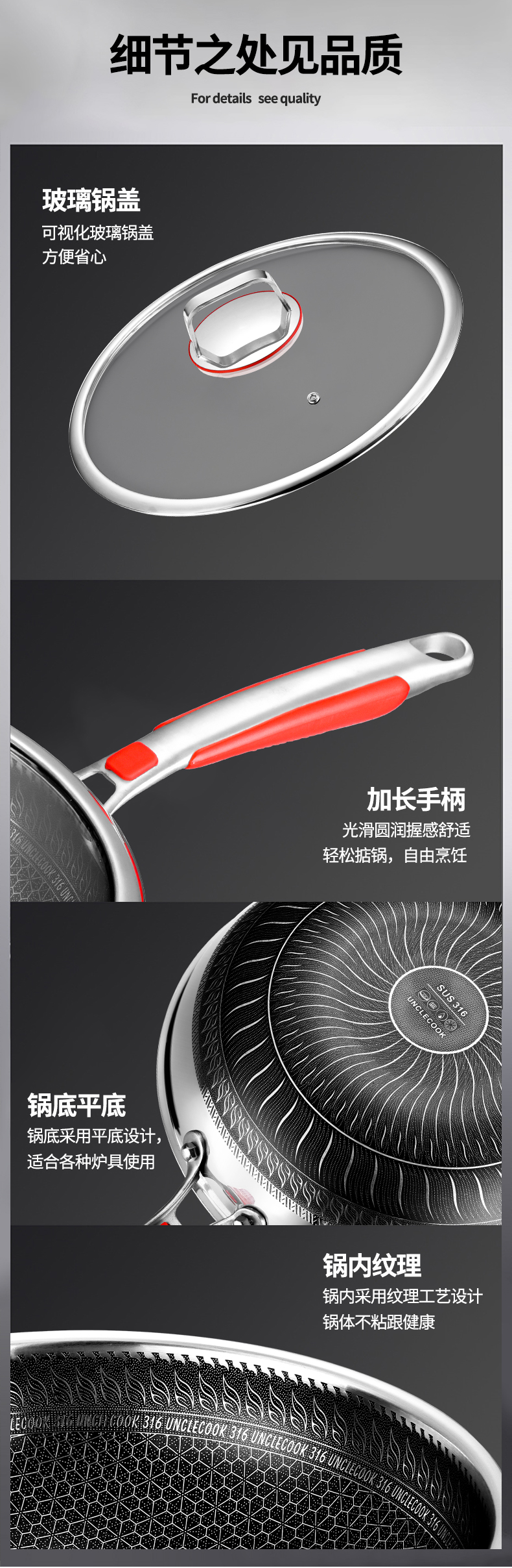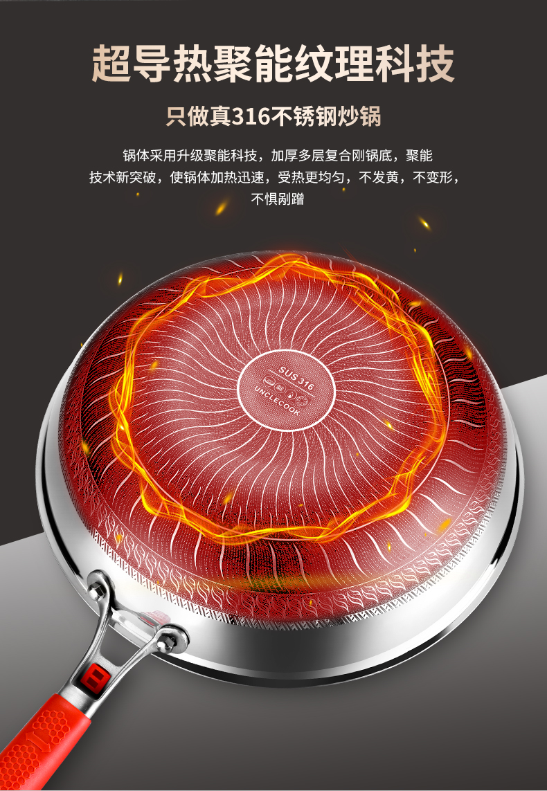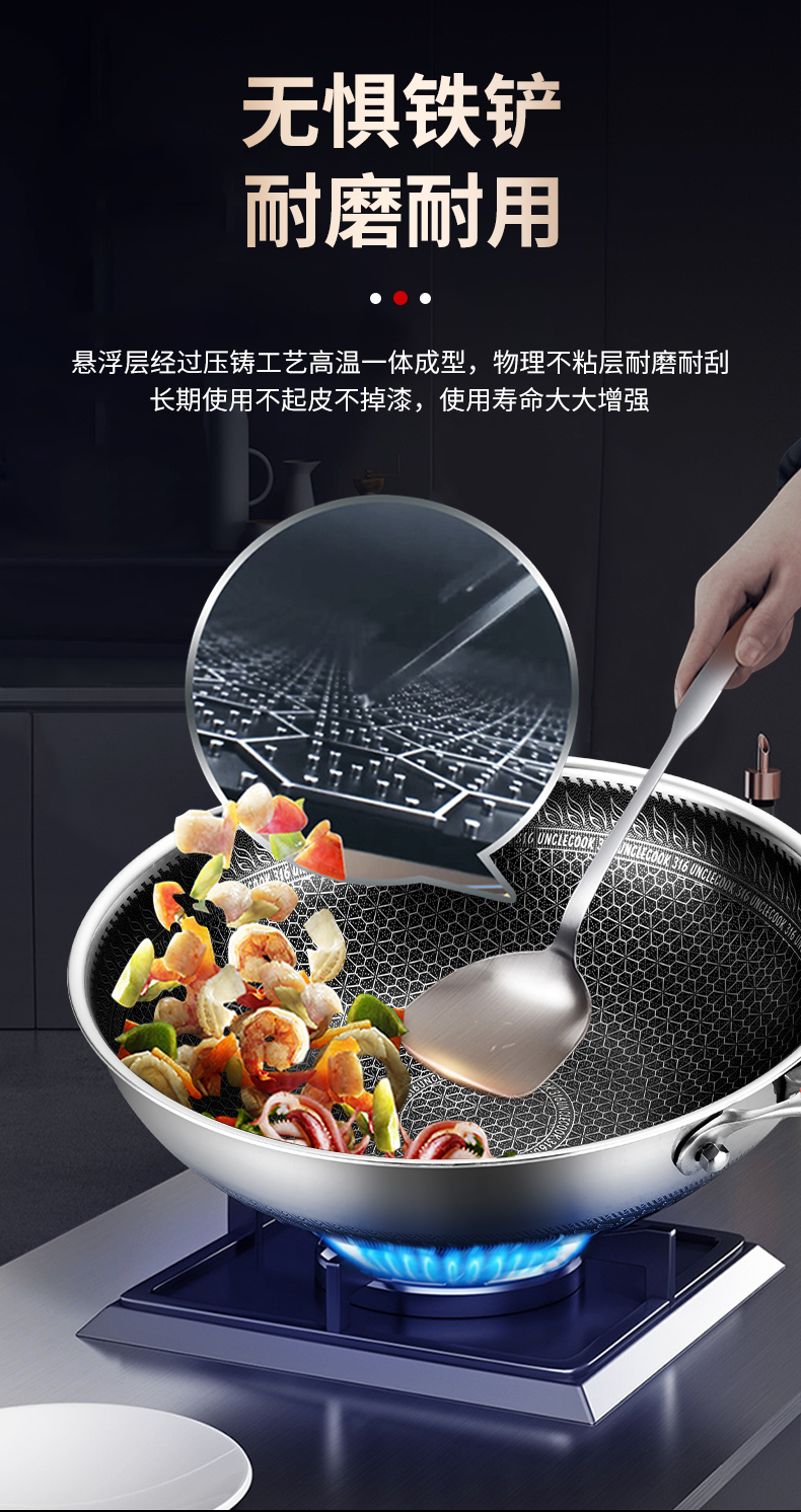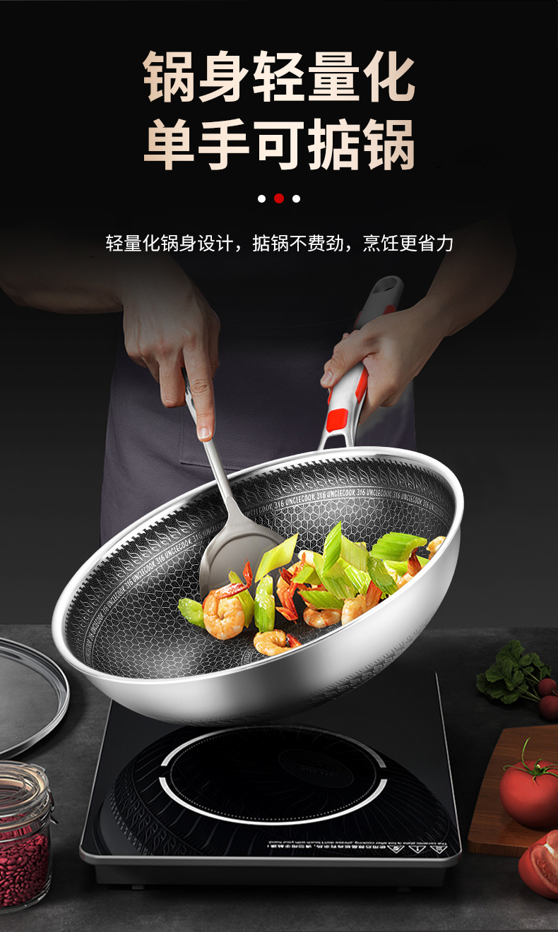 hanle/翰乐32cm双面屏316不锈钢炒锅实惠款HL-F01