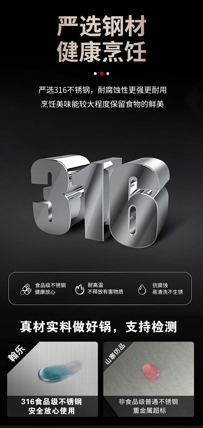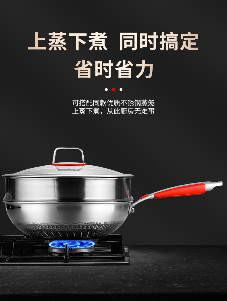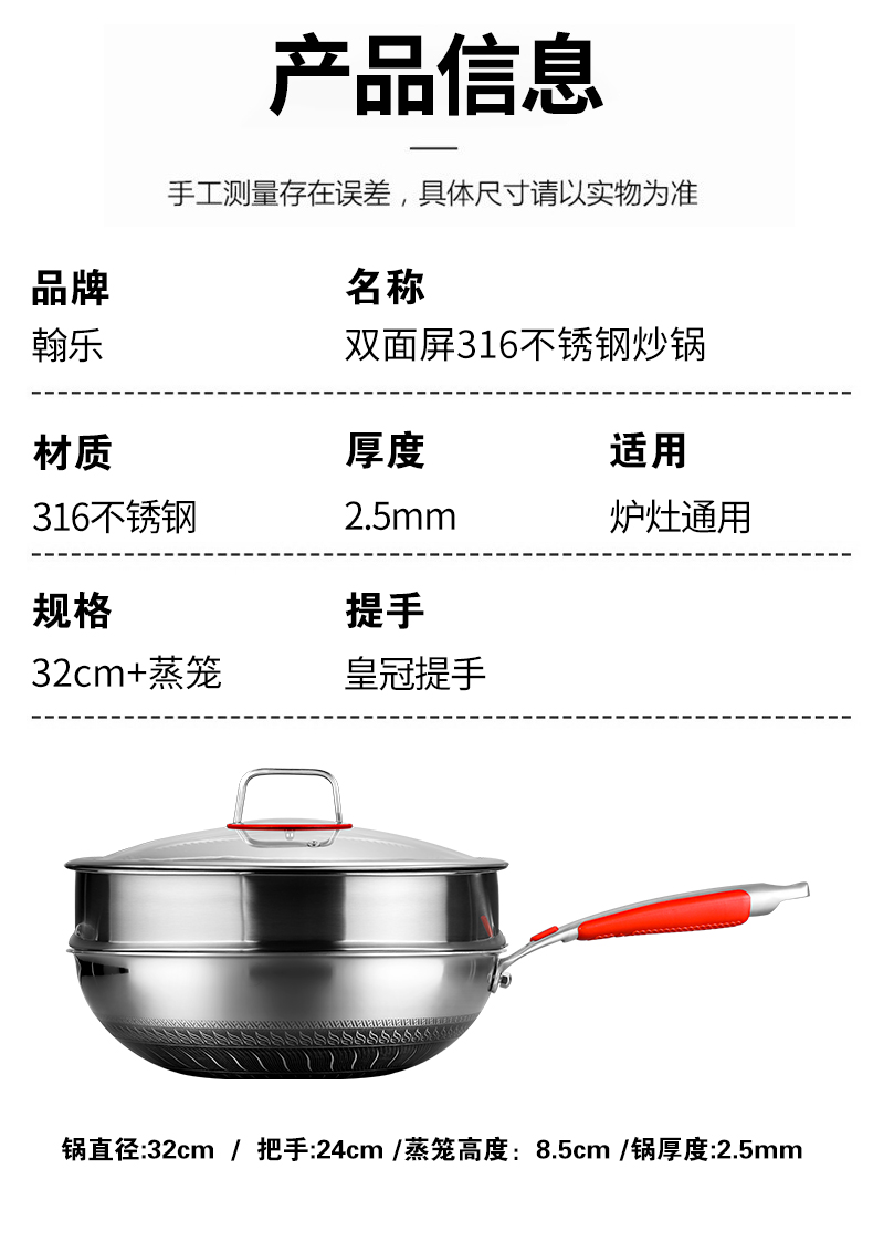 商品名称:hanle/翰乐32cm双面屏316不锈钢炒锅带蒸笼HL-F07