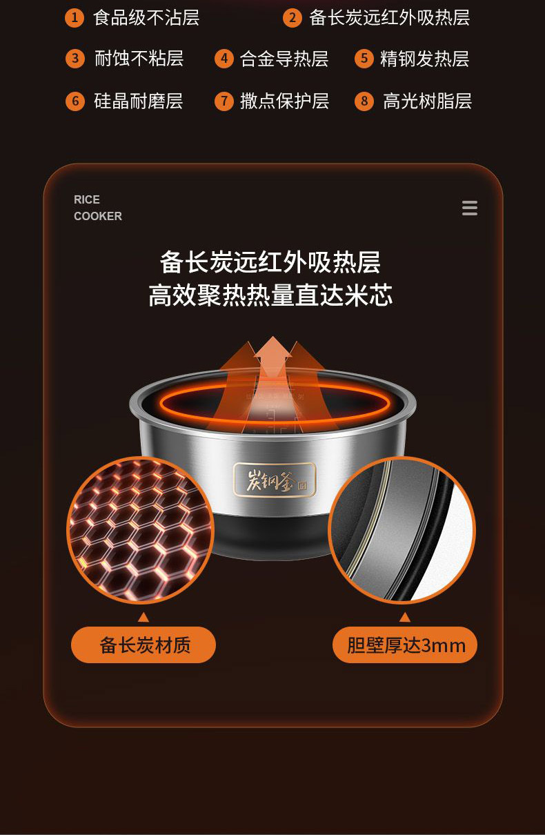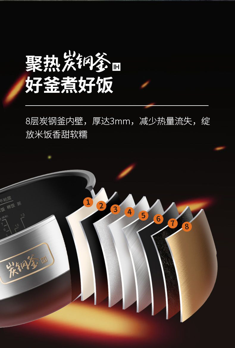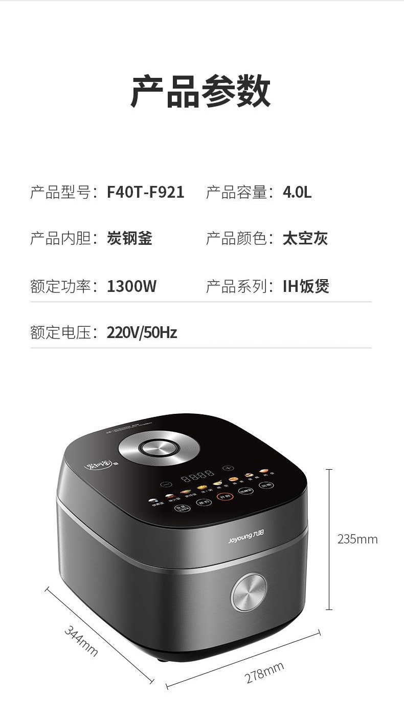 商品名称:Joyoung/九阳4升炭钢釜IH电饭煲F40T-F921
