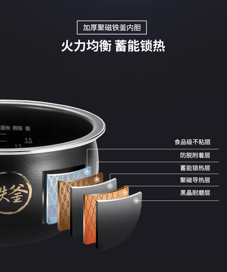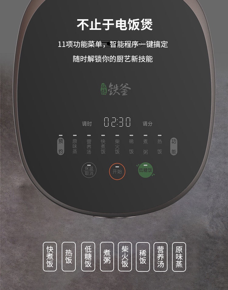 商品名称:Joyoung/九阳4升土灶铁釜低糖电饭煲F-40TD02