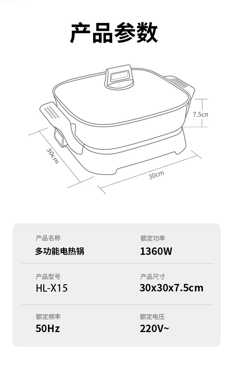 商品名称:hanle/翰乐多功能电热锅HL-X15