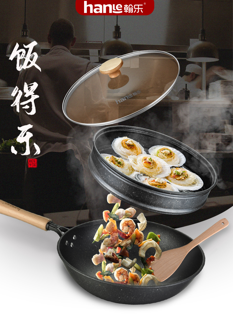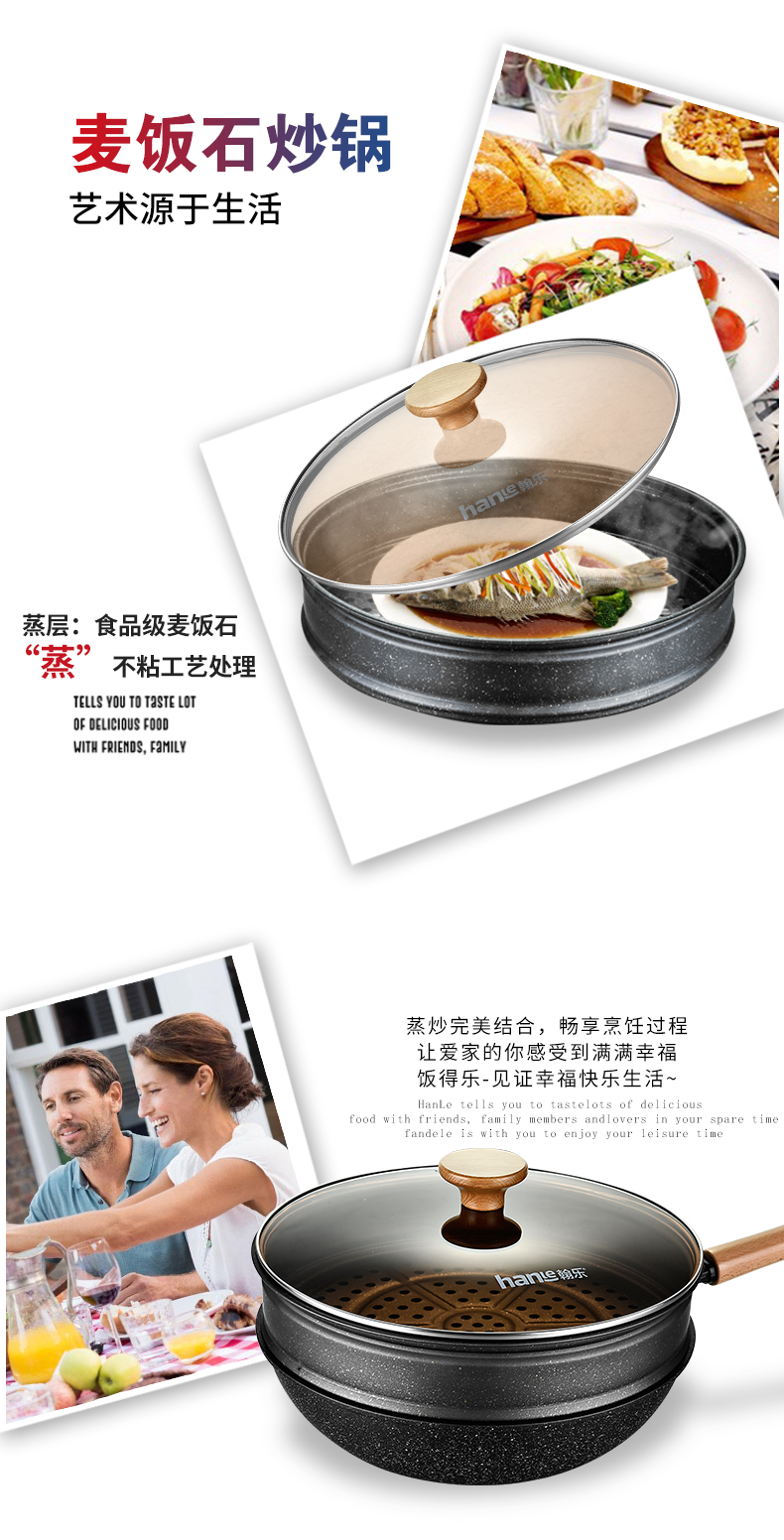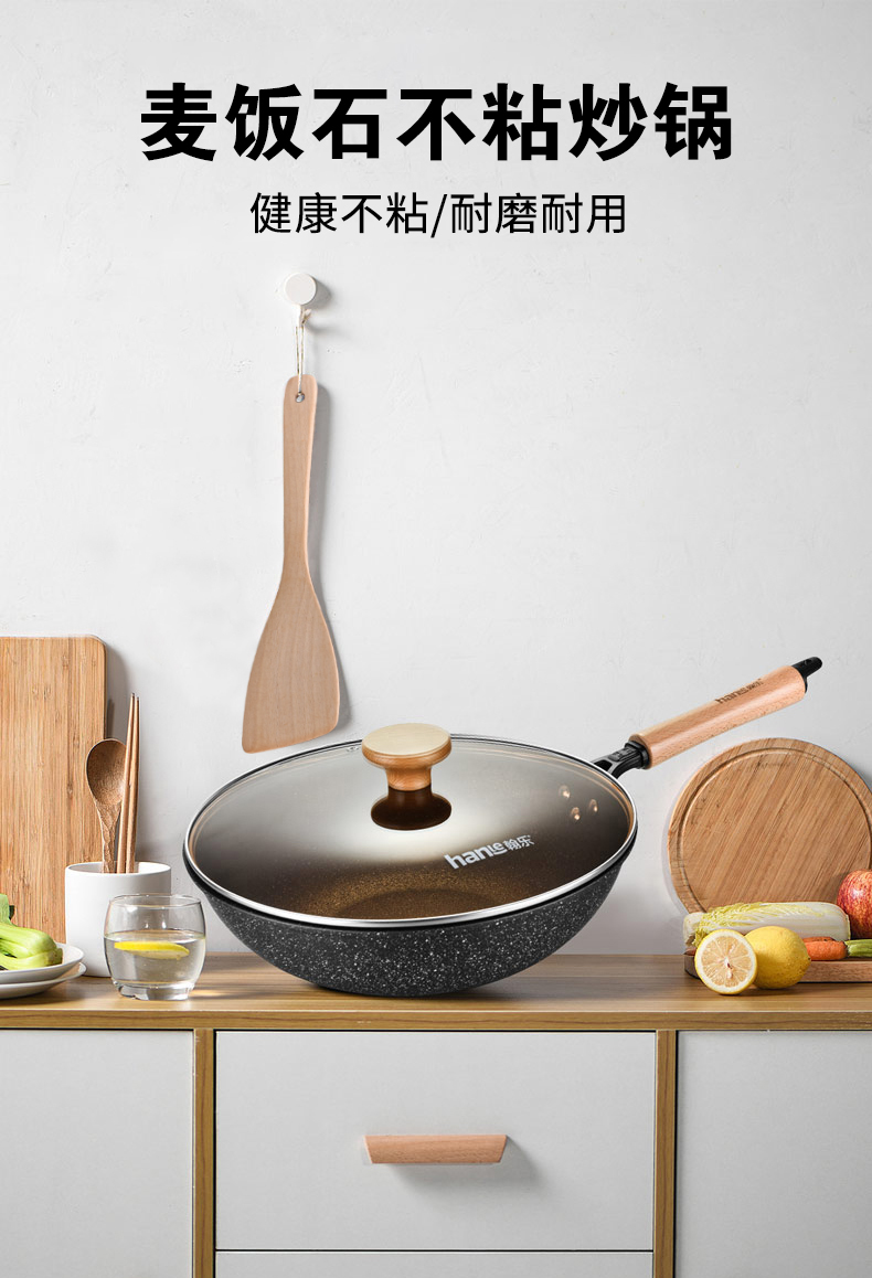 hanle/翰乐32cm饭得乐麦饭石不粘炒锅HL-C10