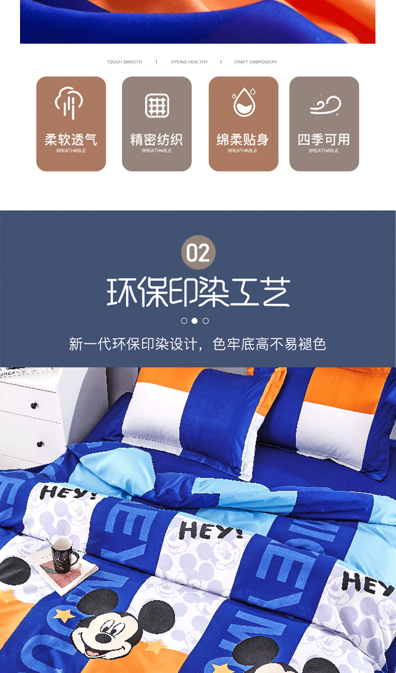 DISNEY/迪士尼奇幻米奇柔肤棉印花床品四件套200x230cm DJM20-2023C