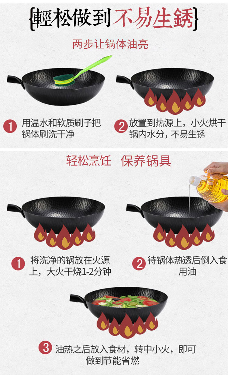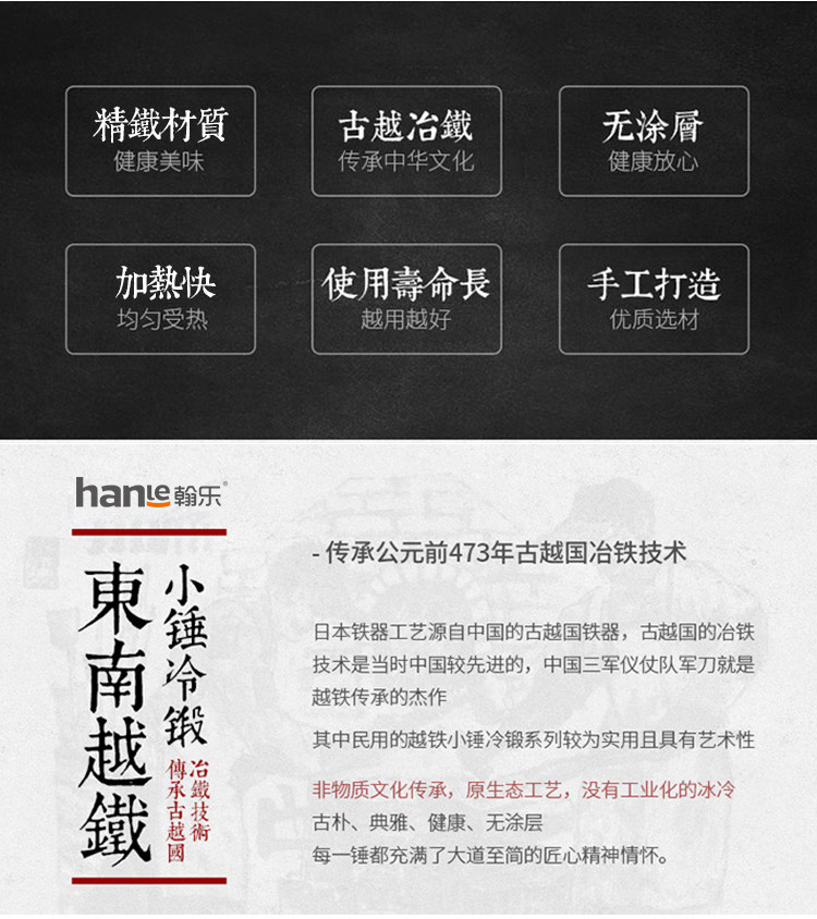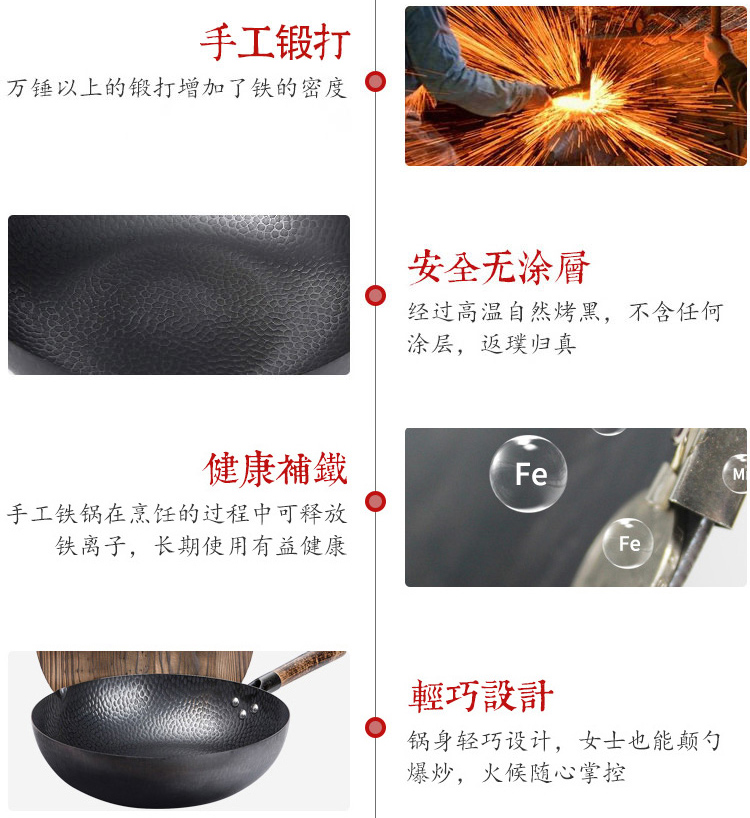 商品名称:hanle/翰乐32cm手工锻打薄款炒锅HL-011