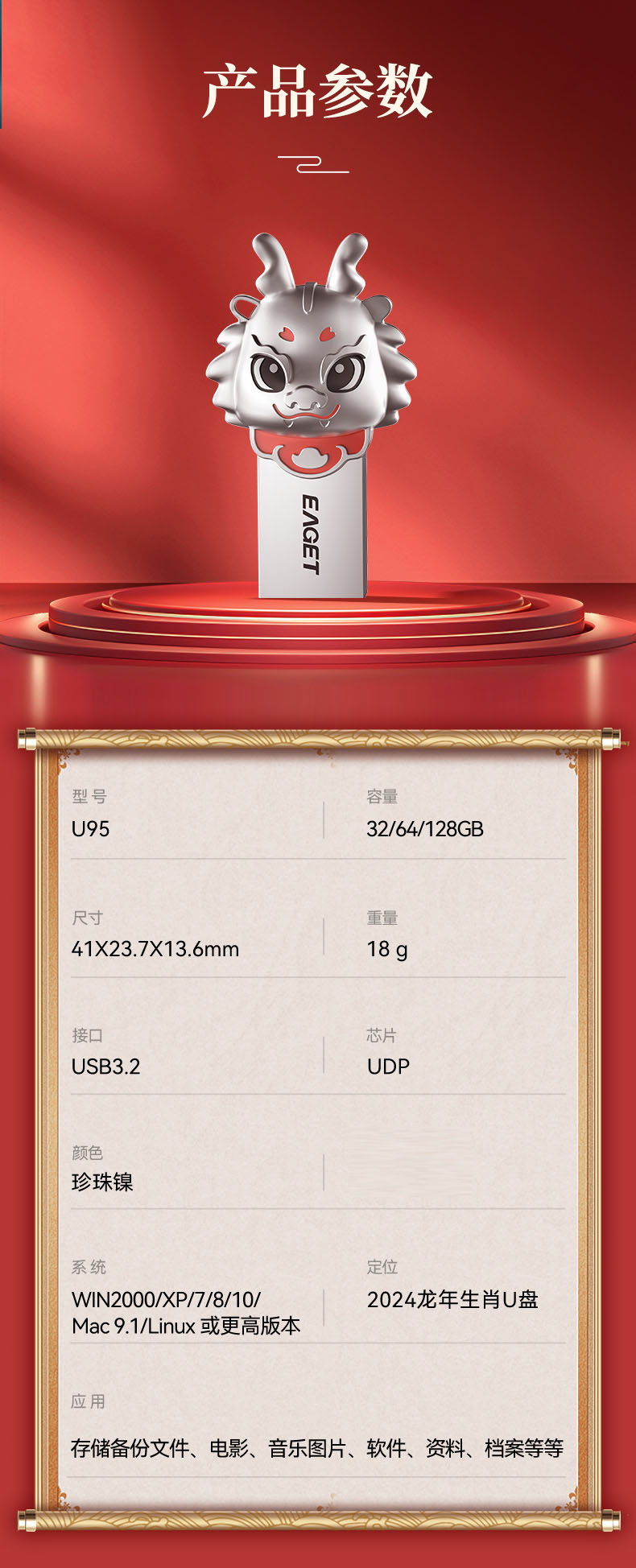 商品名称:【京东配送】EAGET/忆捷甲辰龙年生肖U盘U95