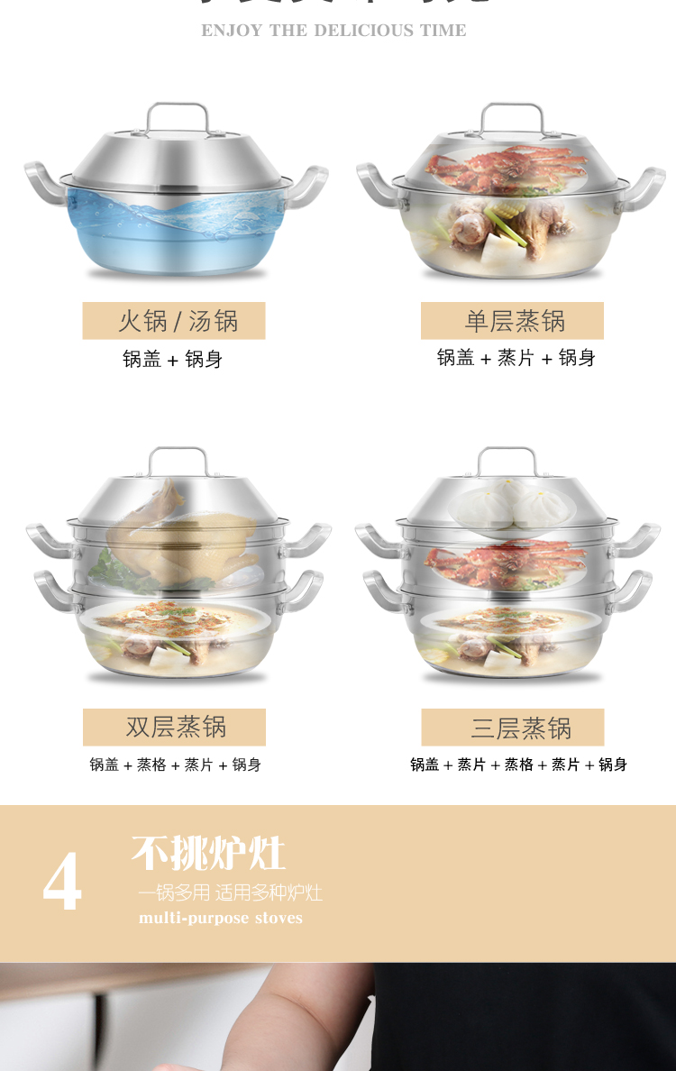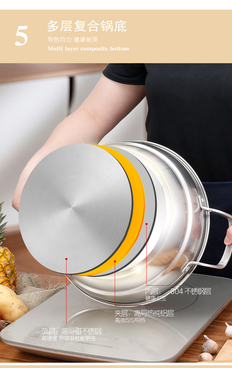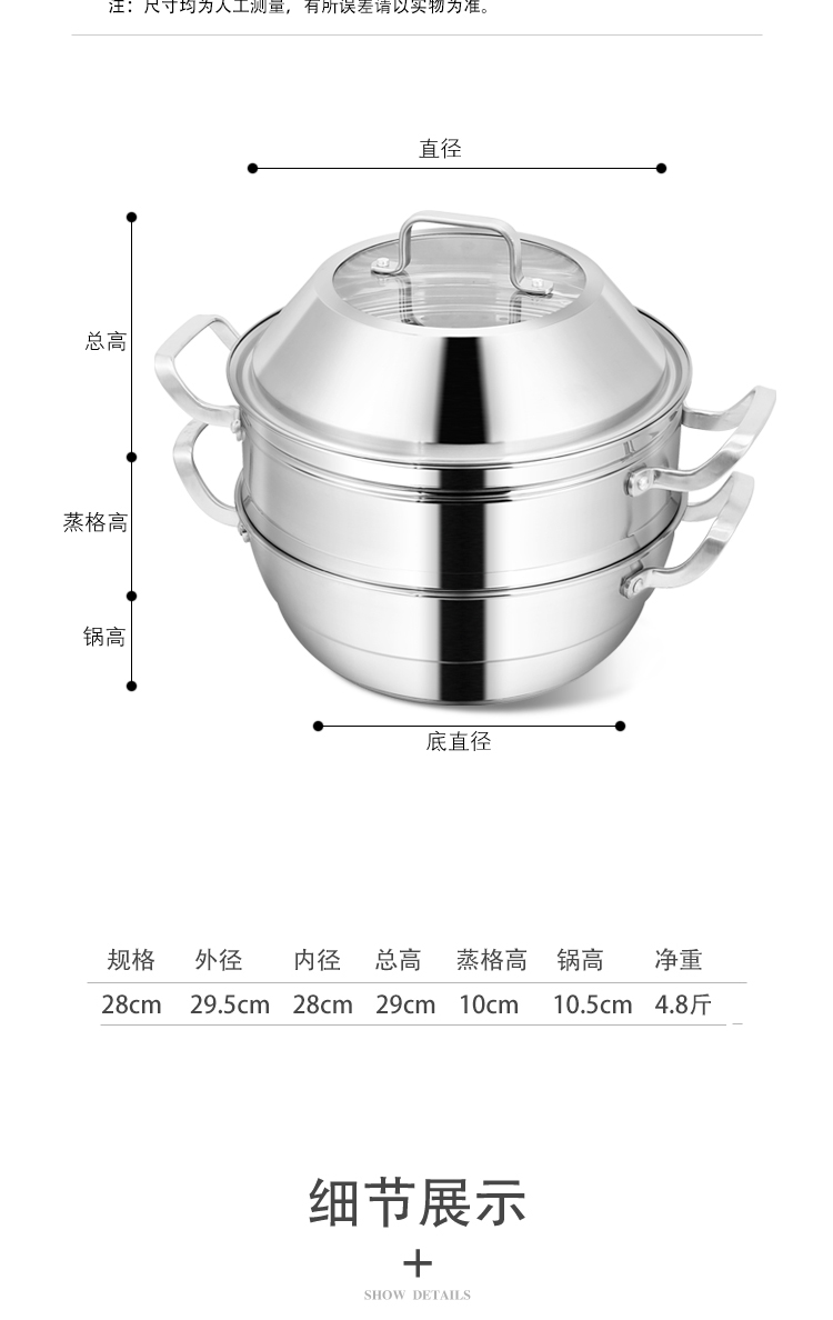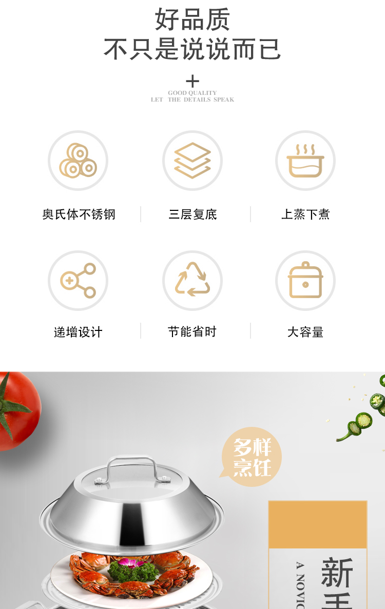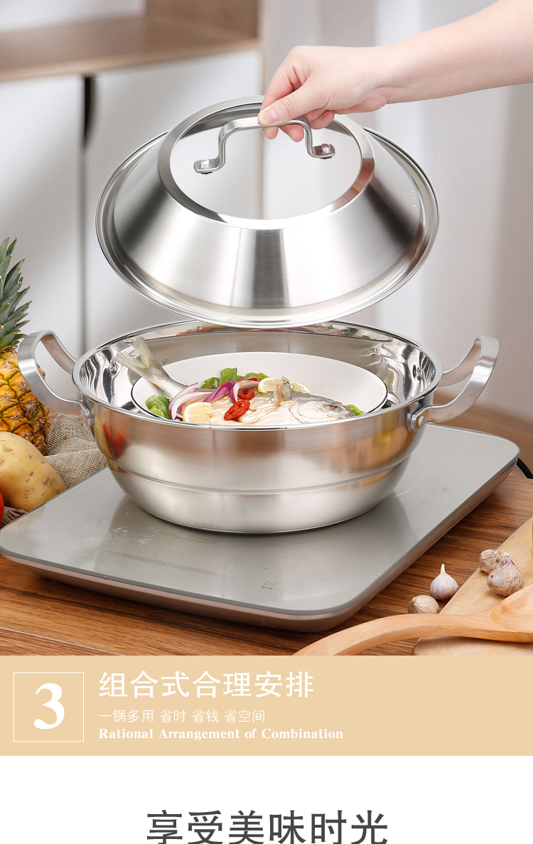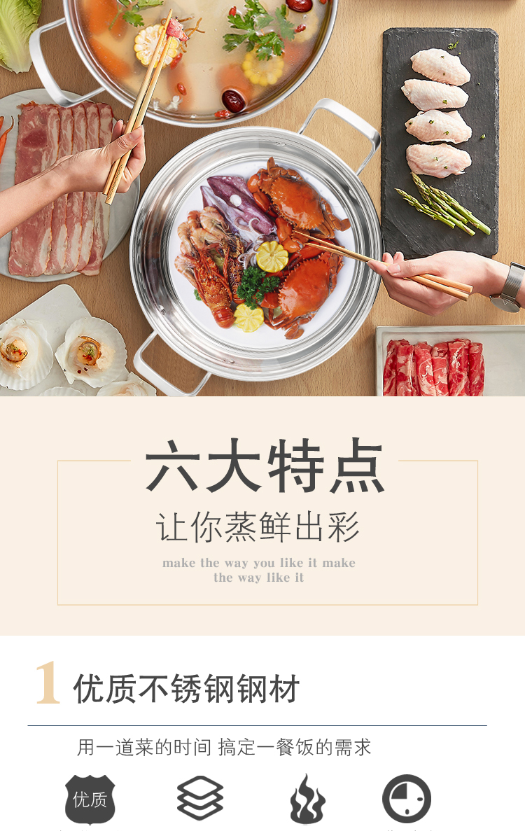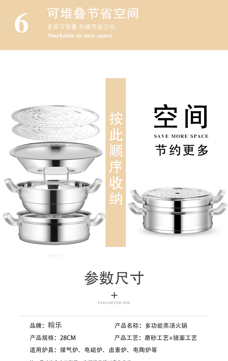 商品名称:hanle/翰乐28cm不锈钢多功能蒸汤锅HL-ZT01