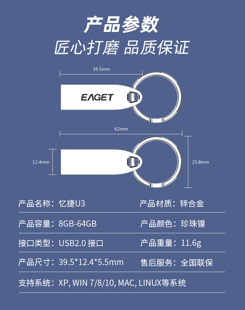 商品名称:【京东/顺丰配送】EAGET/忆捷移动闪存盘U3