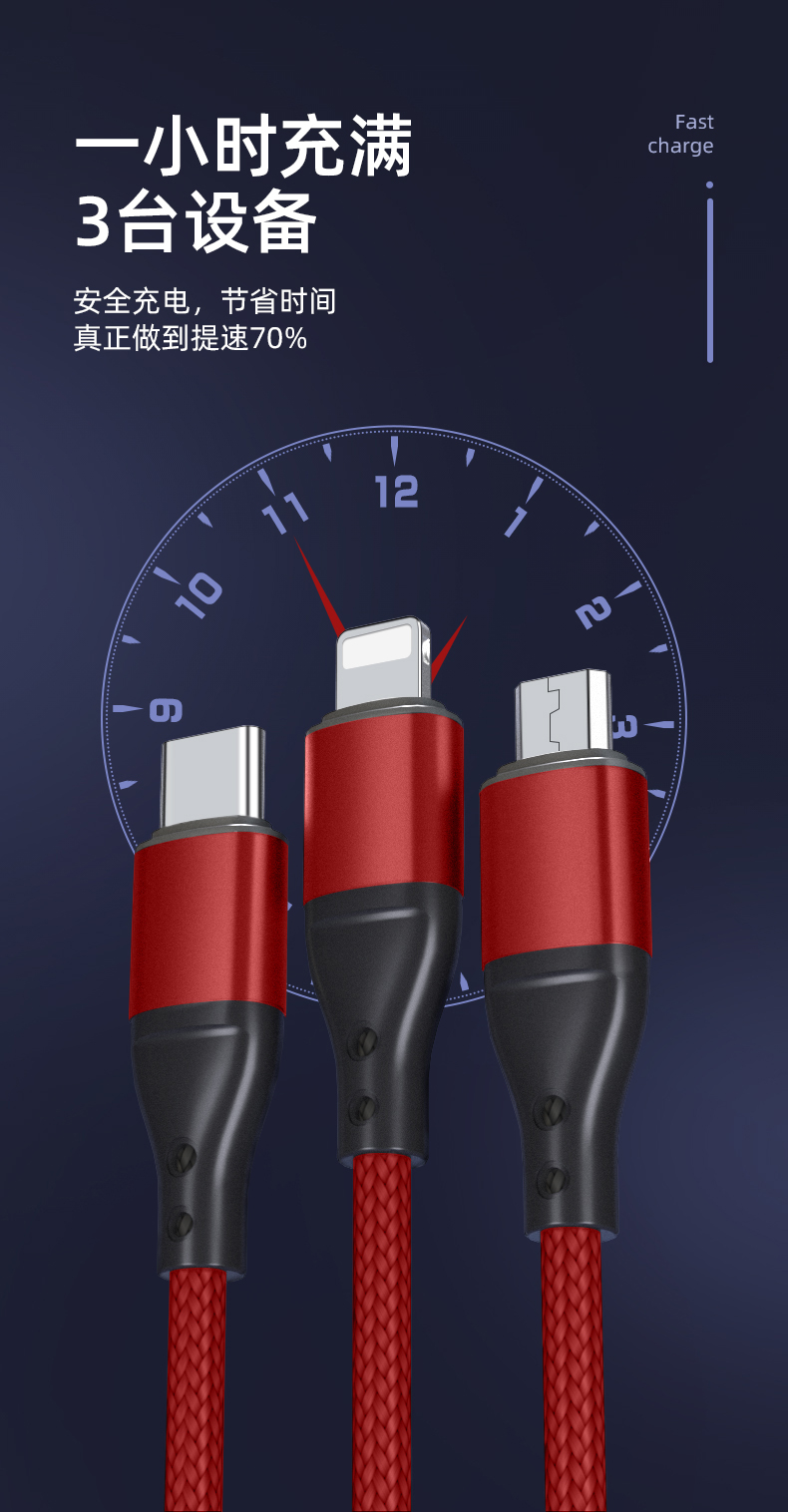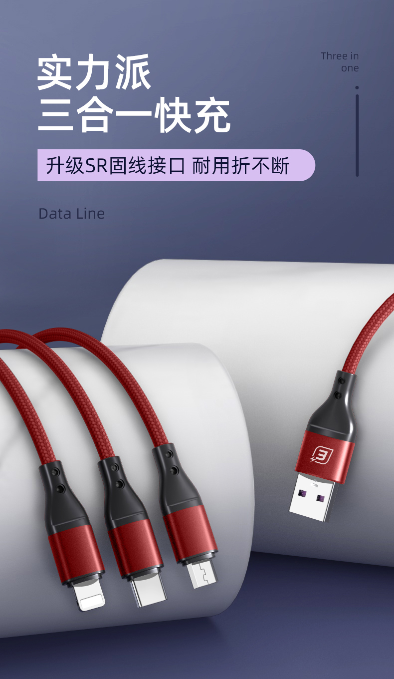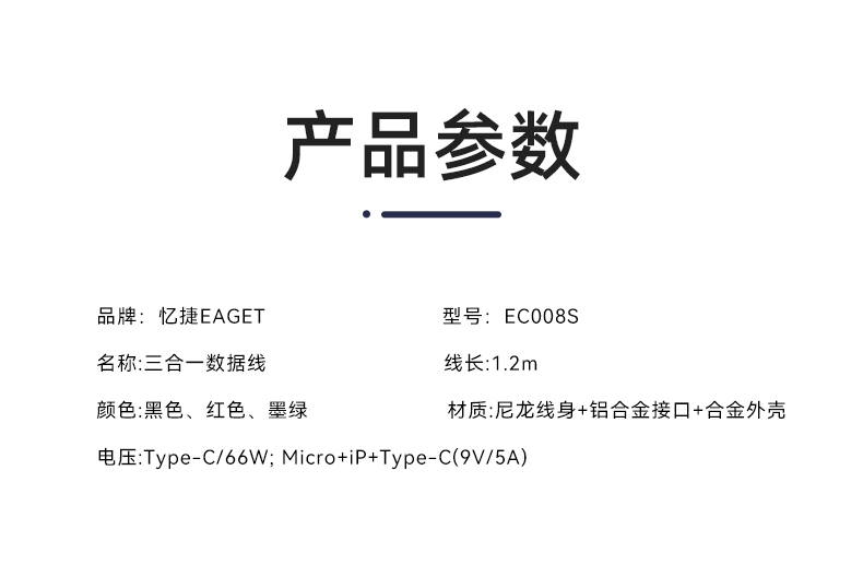 商品名称:EAGET/忆捷三合一快充数据线EC008S