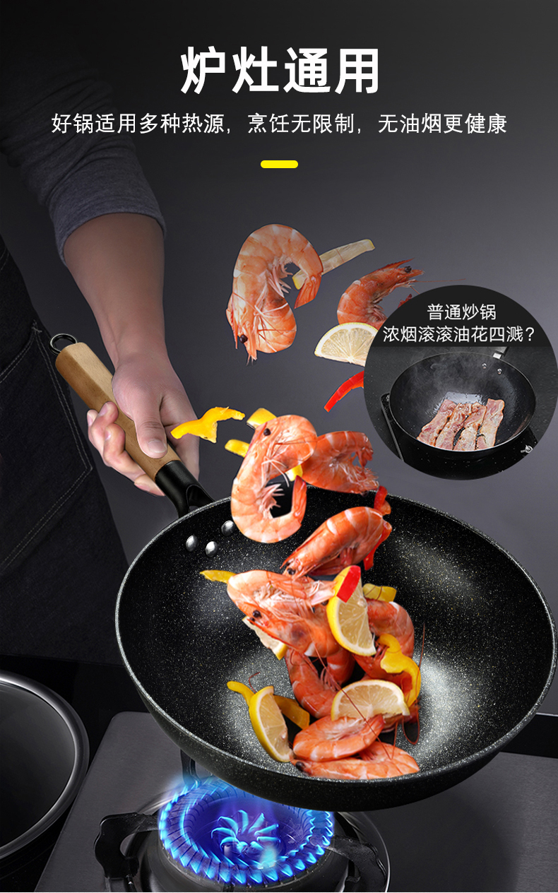 商品名称:hanle/翰乐32cm麦饭石不粘炒锅HL-T05
