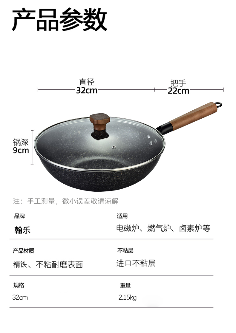 hanle/翰乐32cm麦饭石不粘炒锅HL-T05