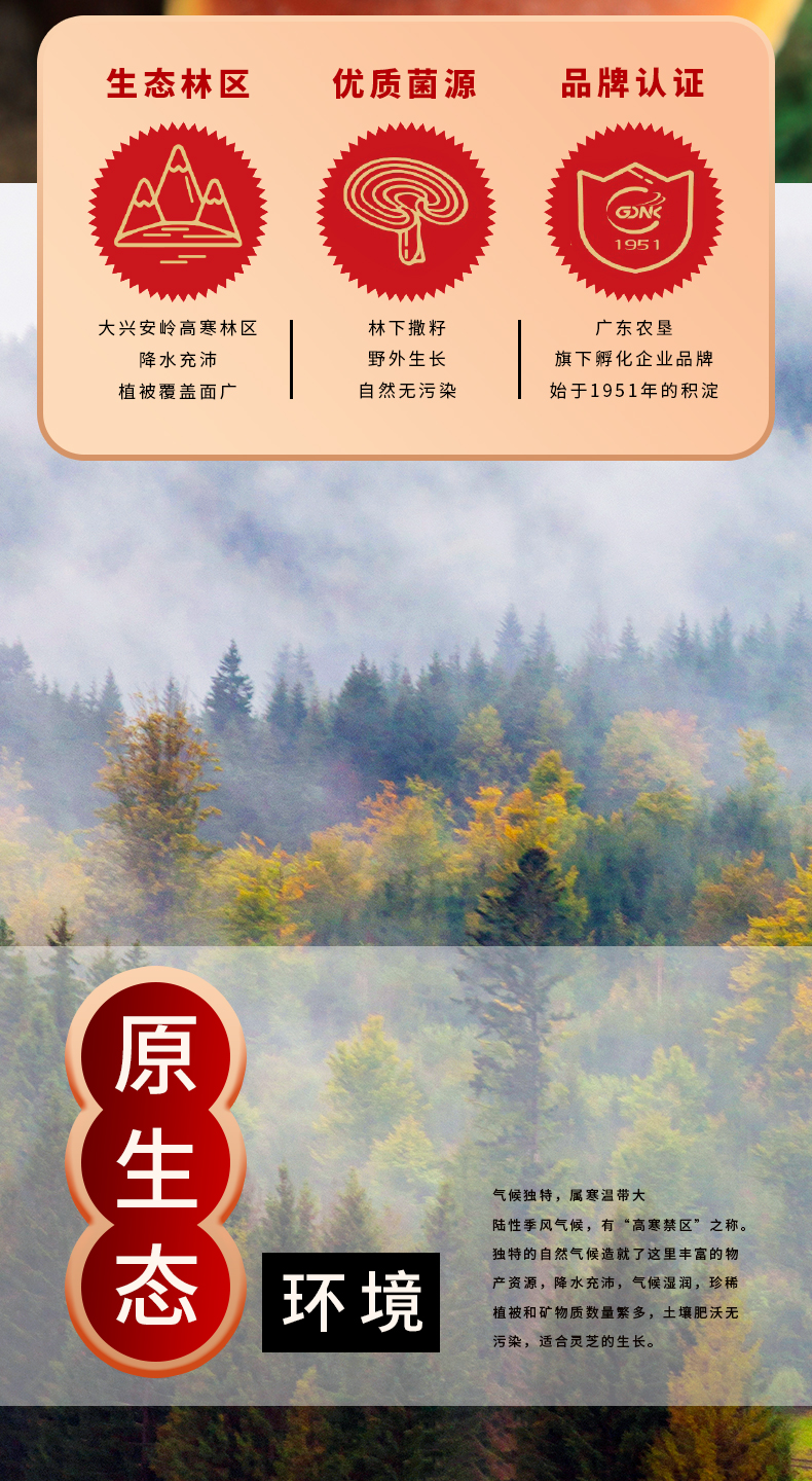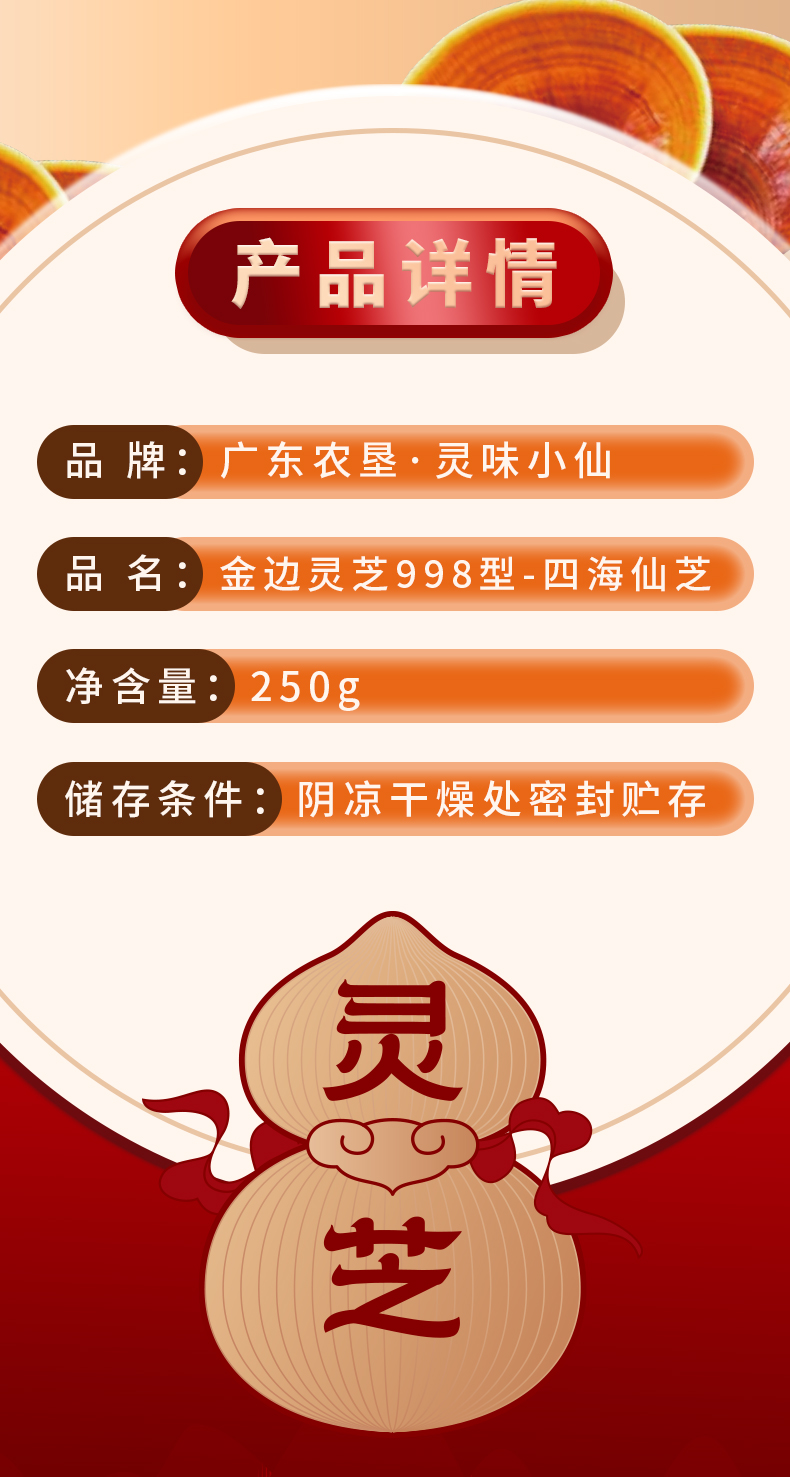 商品名称:廣東農垦灵味小仙四海仙芝金边灵芝998型250g