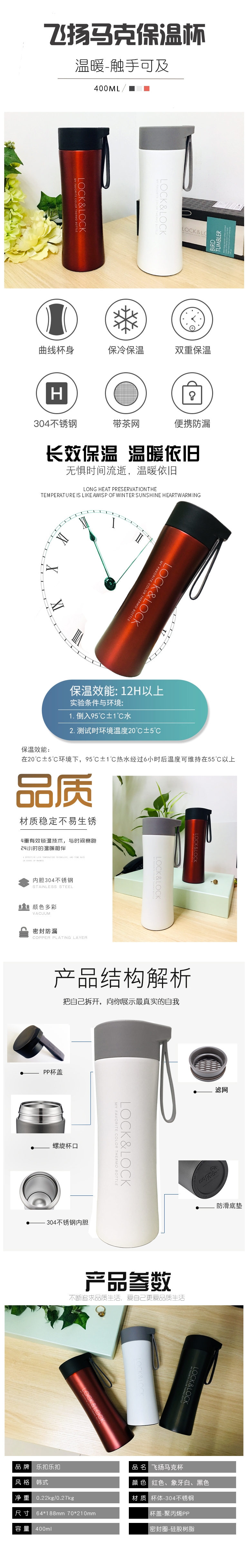 商品名称:LOCK&LOCK/乐扣乐扣400毫升飞扬马克保温杯