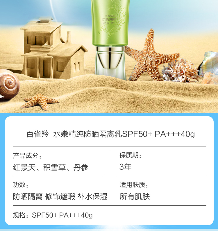 商品名称:PECHOIN/百雀羚水嫩精纯防晒隔离乳SPF50+PA+++40g