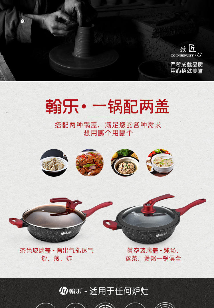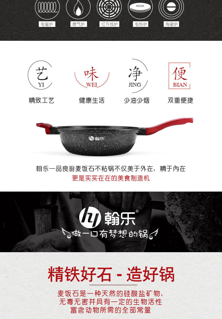 hanle/翰乐一品良厨32cm麦饭石不粘炒锅X6751