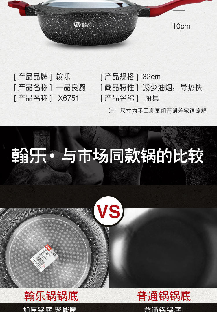商品名称:hanle/翰乐一品良厨32cm麦饭石不粘炒锅X6751