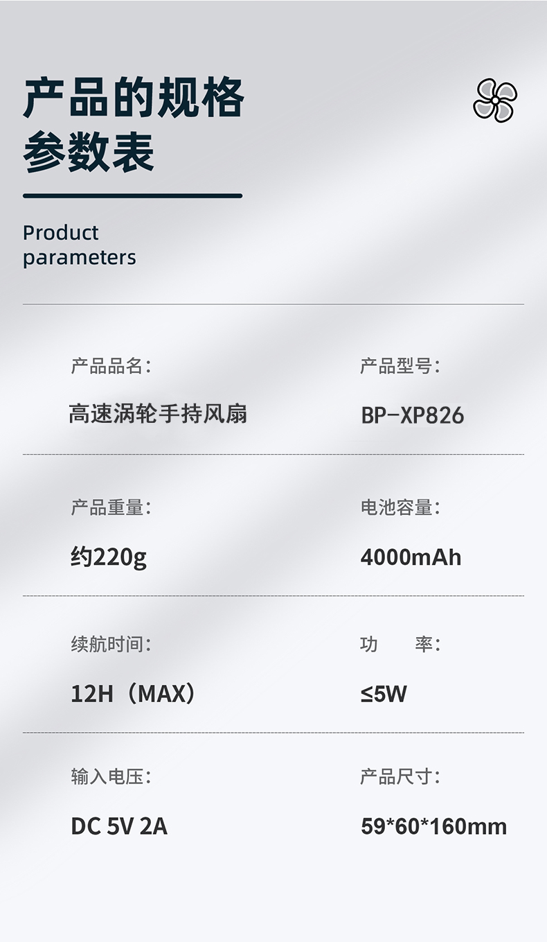 商品名称:BAOPAI/豹牌高速涡轮手持风扇BP-XP826