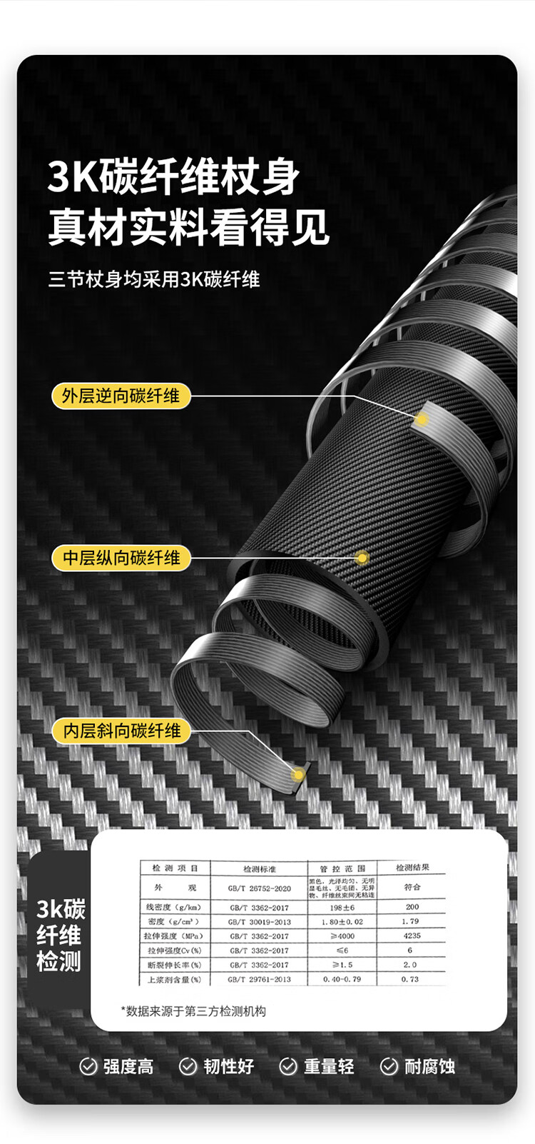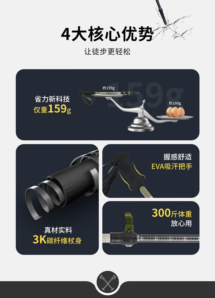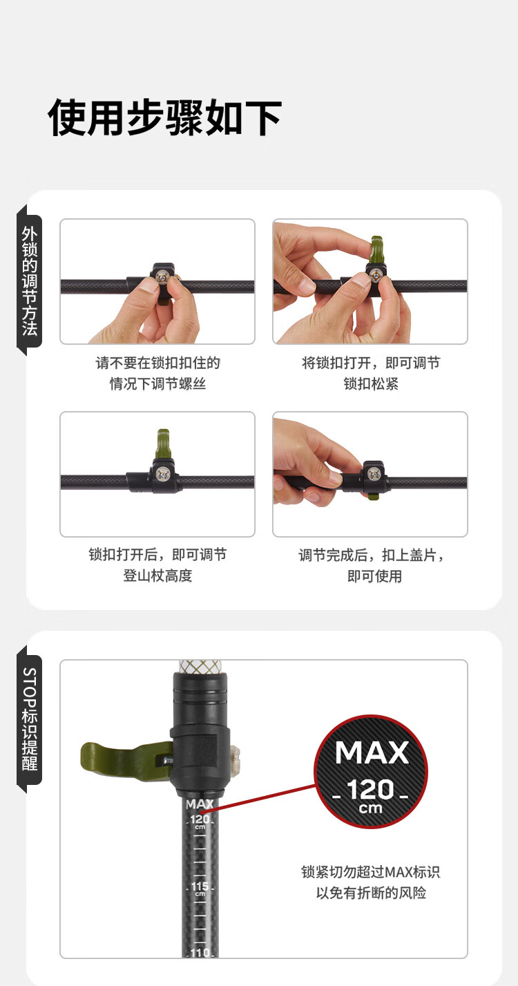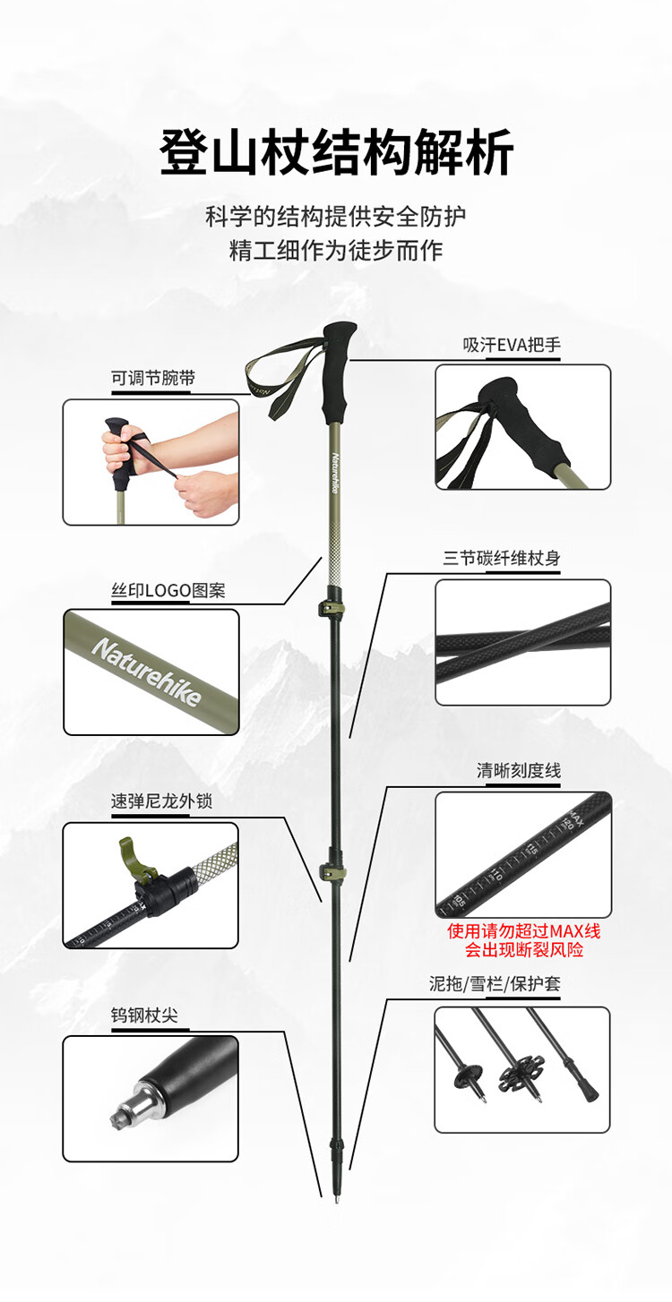 商品名称:Naturehike/挪客ULTRA LIGHT系列三节碳纤维登山杖