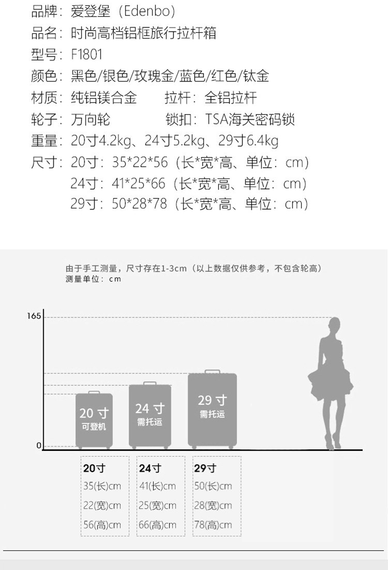 商品名称:Edenbo/爱登堡时尚高档铝框旅行拉杆箱F1801