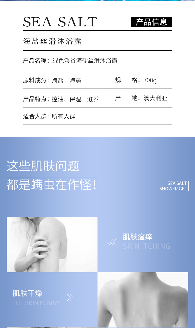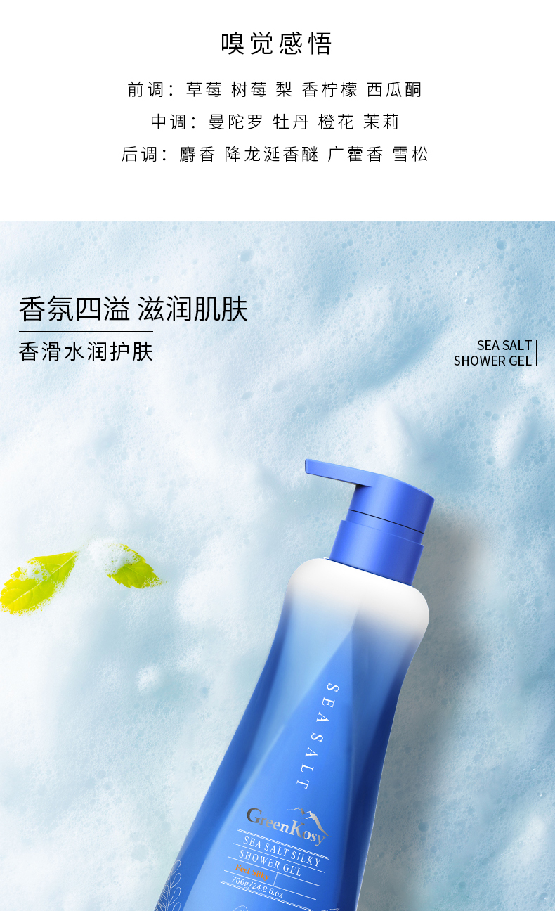 商品名称:GreenKosy/绿色溪谷海盐丝滑沐浴露700g