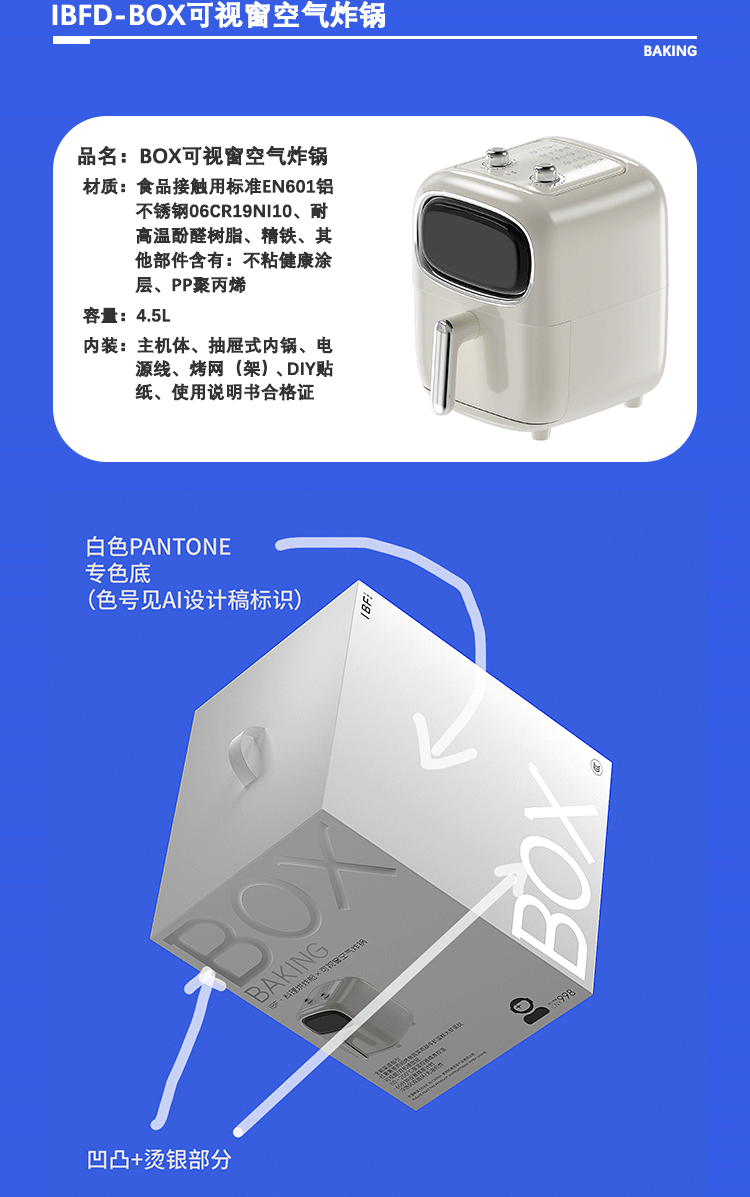 商品名称:IBF/艾博菲4.5升BOX百宝箱系列可视窗空气炸锅
