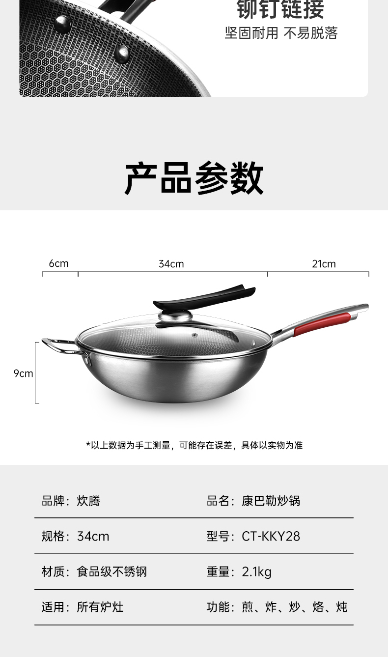 商品名称:hanle/翰乐炊腾34cm康巴勒炒锅CT-KKY28