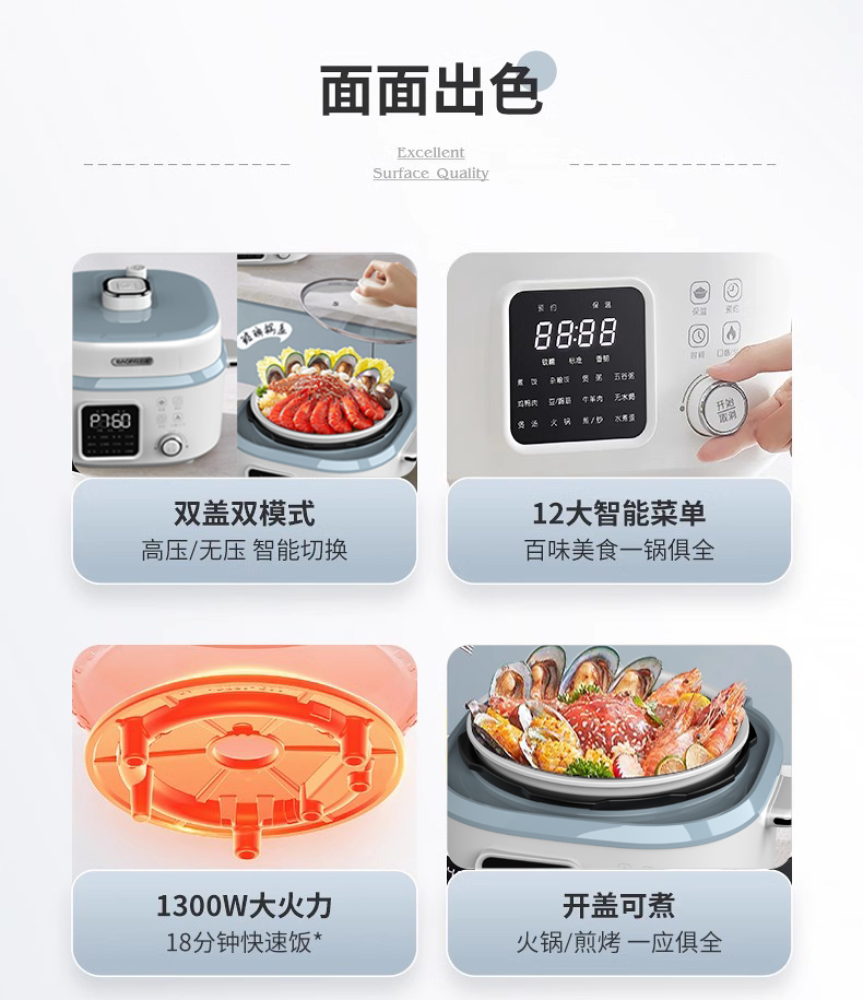 商品名称:BAOPAI/豹牌4升双盖全能压力锅BP-WD338