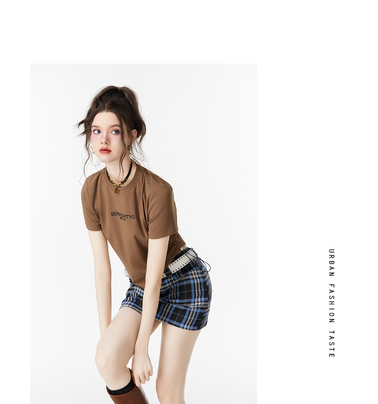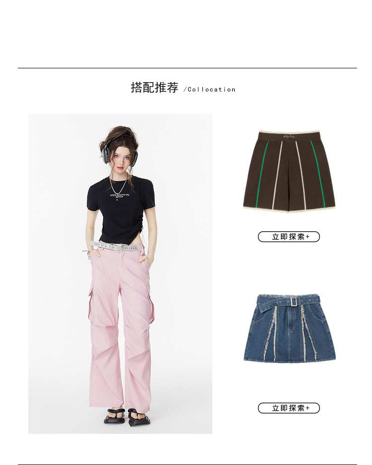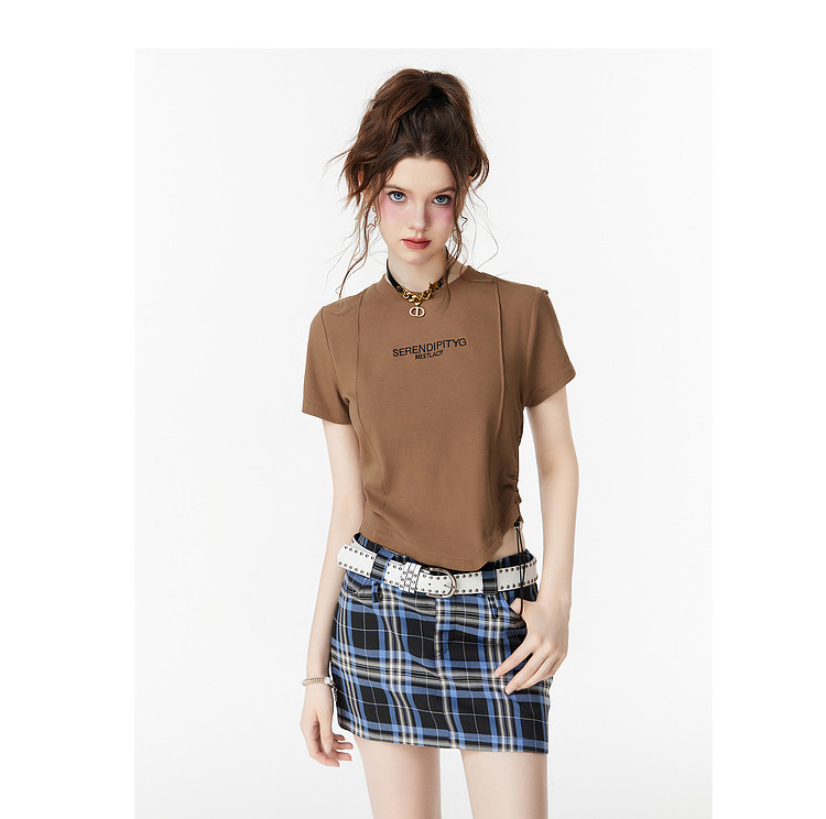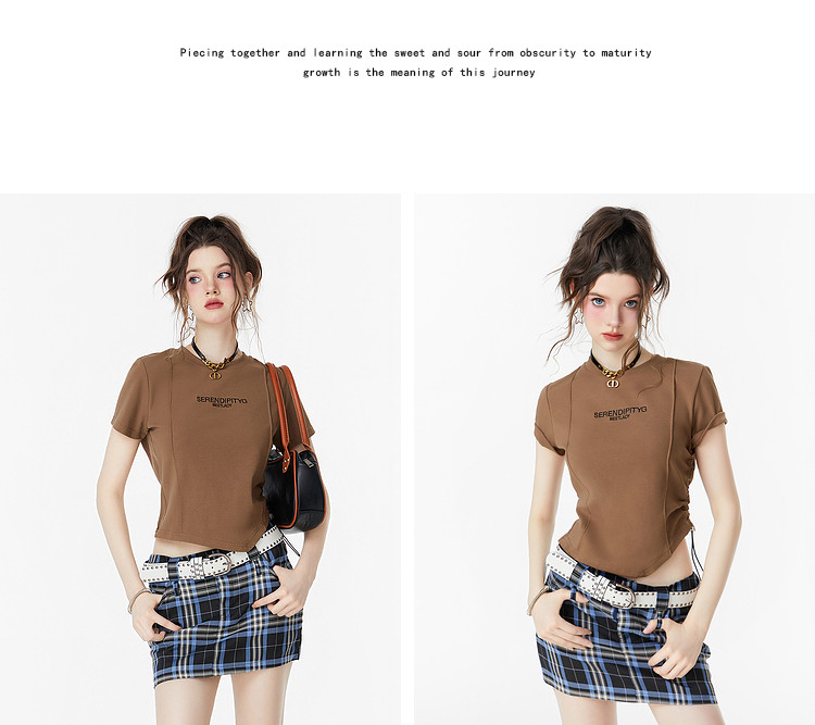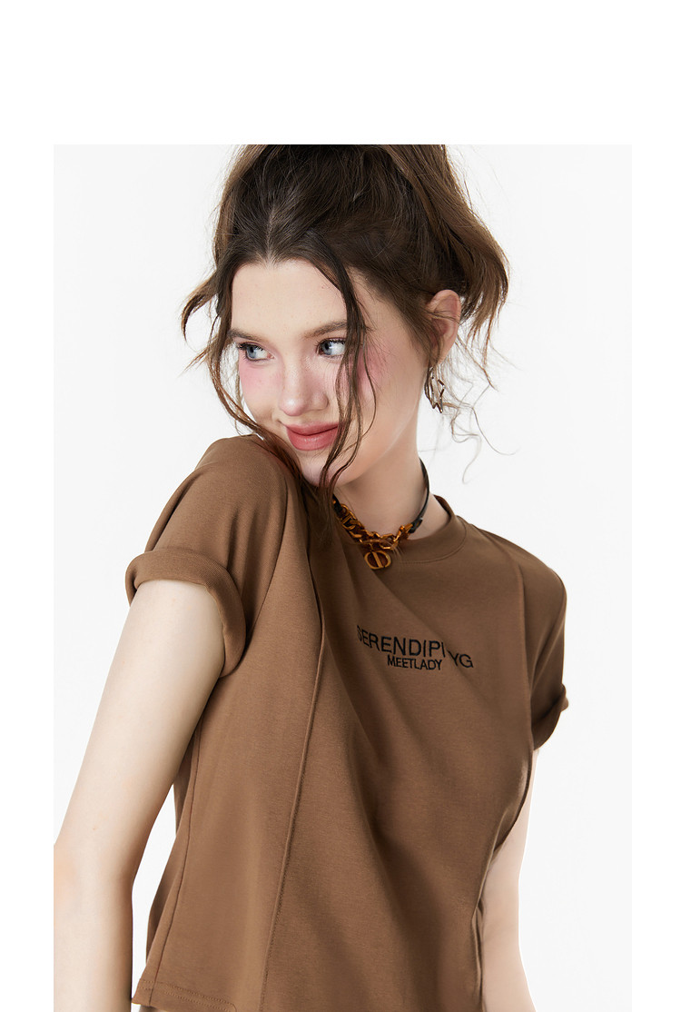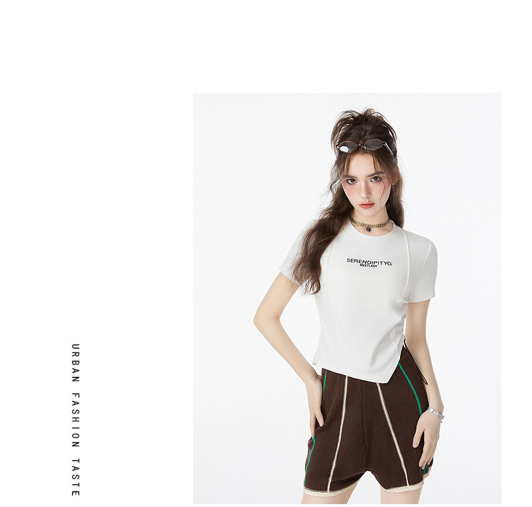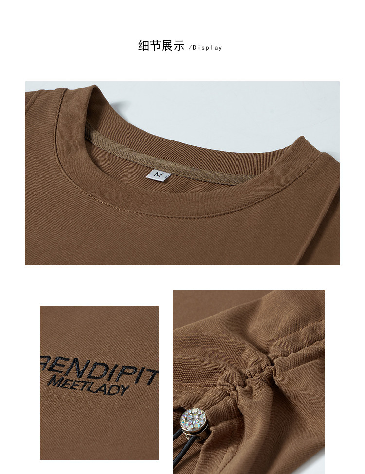 商品名称:夏装百搭纯色短袖t恤女辣妹字母绣花抽绳上衣 510804