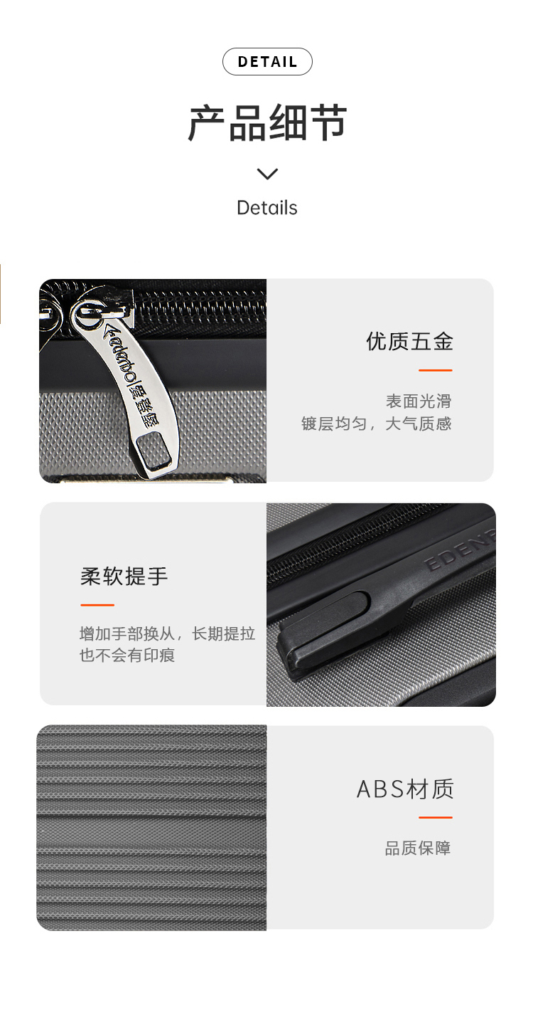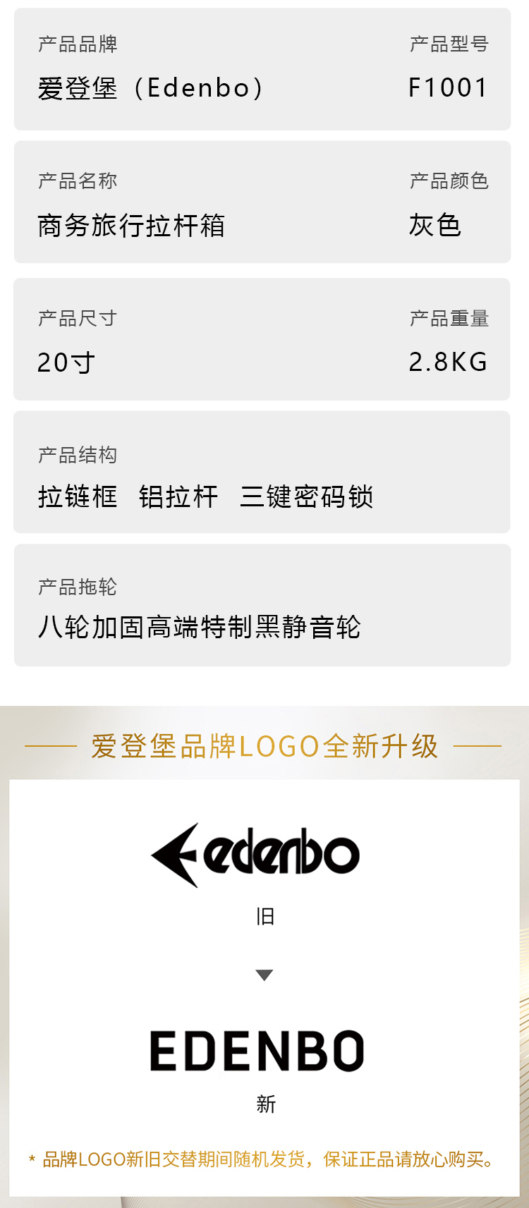 商品名称:Edenbo/爱登堡20寸商务旅行拉杆箱登机箱-灰色F1001