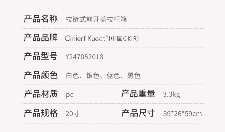 商品名称:Edenbo/爱登堡拉链式前开盖拉杆箱