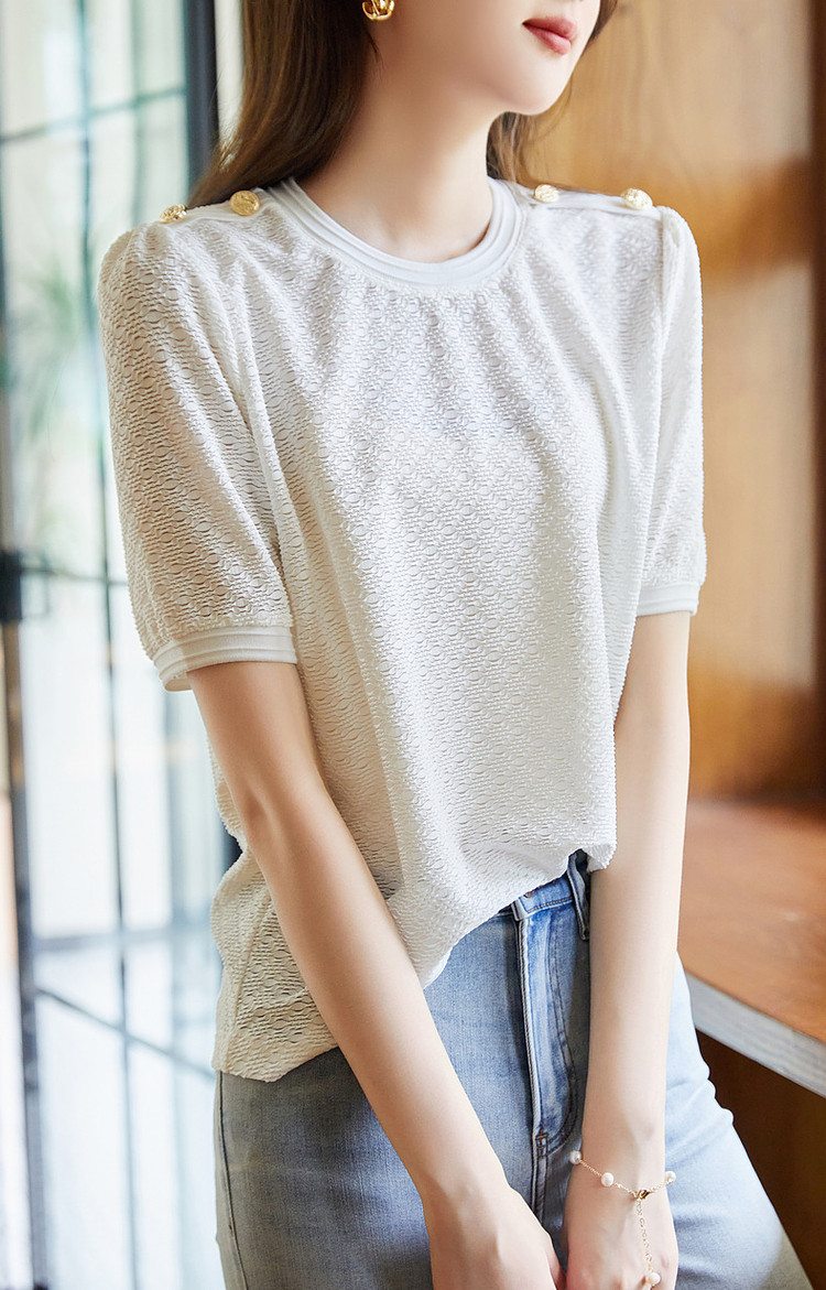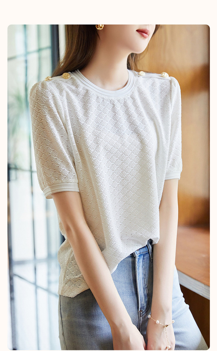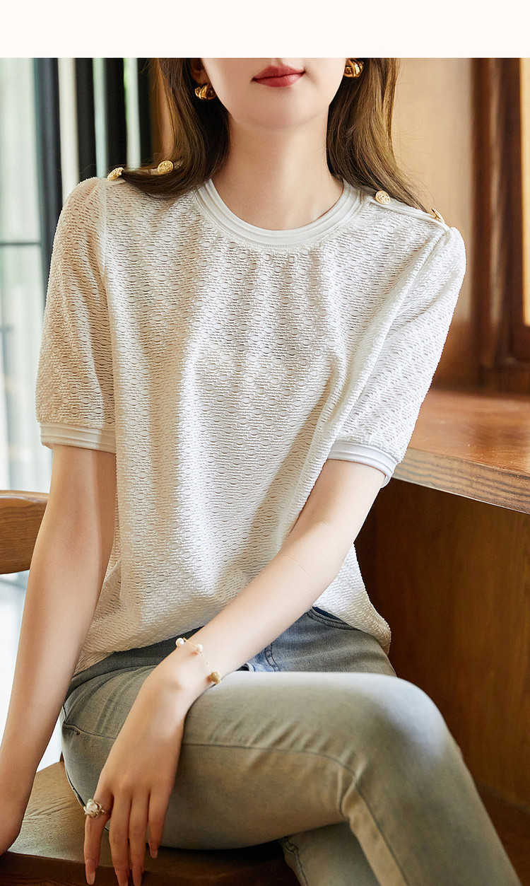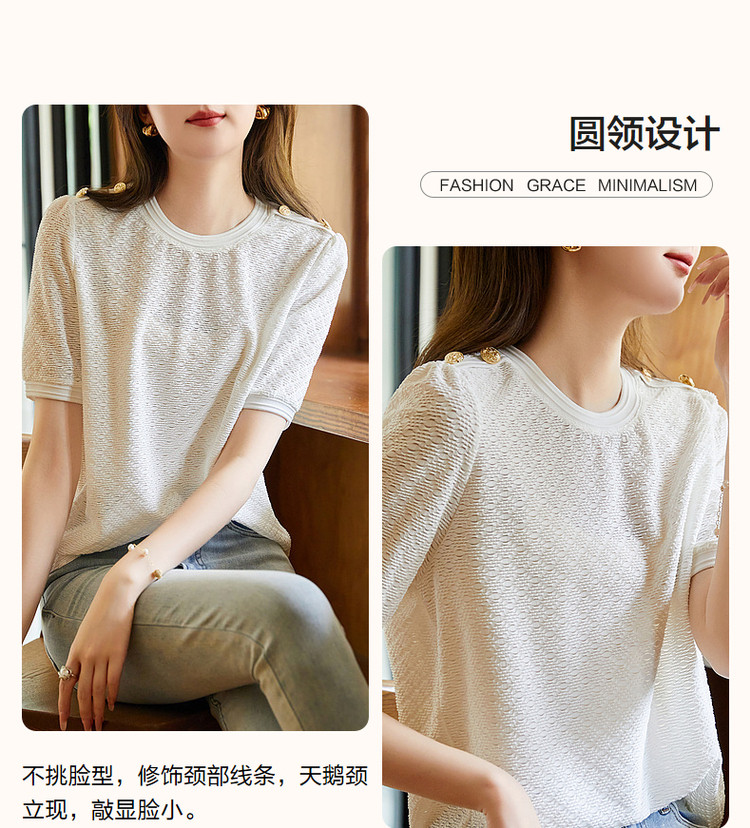 商品名称:【针织镂空女式t恤】夏季圆领简约微弹短袖t恤女 736257
