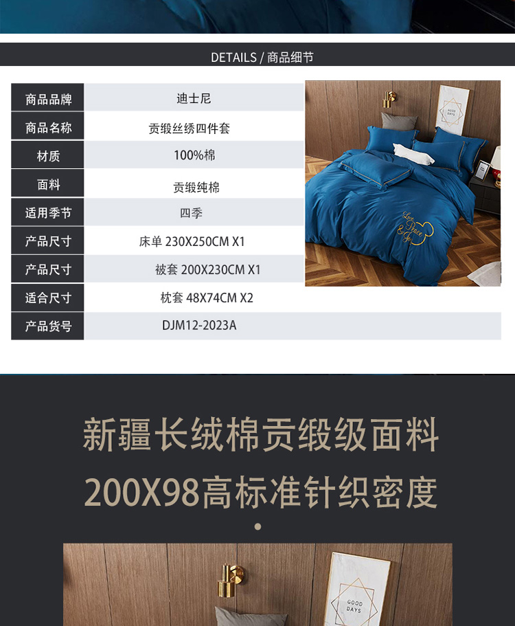 商品名称:DISNEY/迪士尼贡缎丝绣床品四件套200*230cm