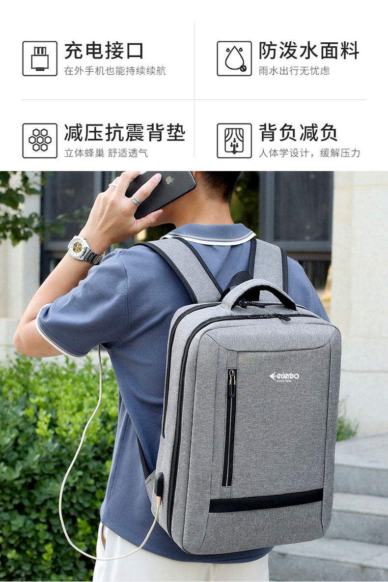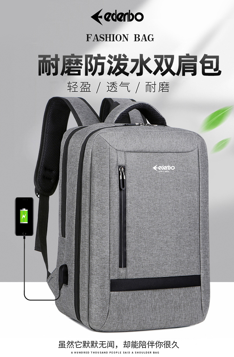 商品名称:Edenbo/爱登堡简约时尚双肩包-灰色F-W978