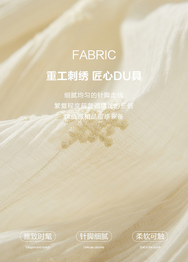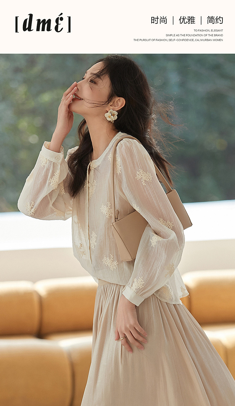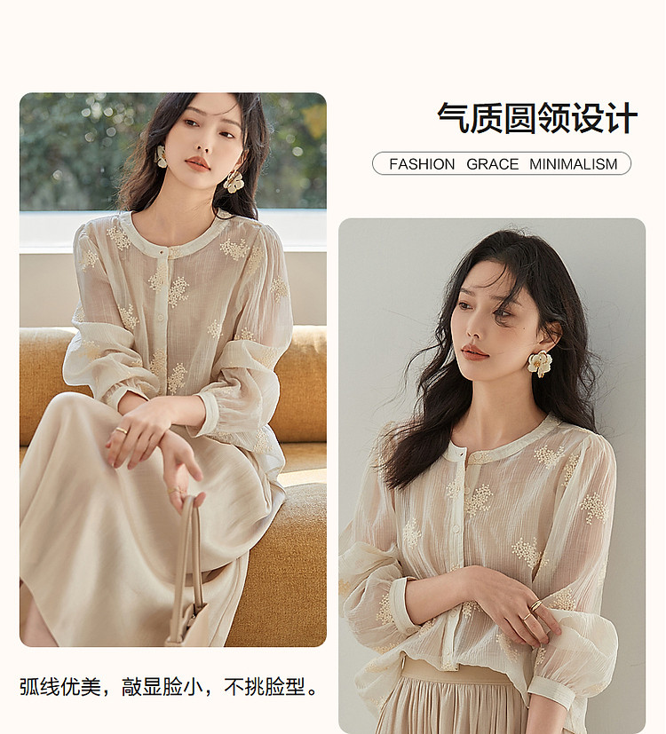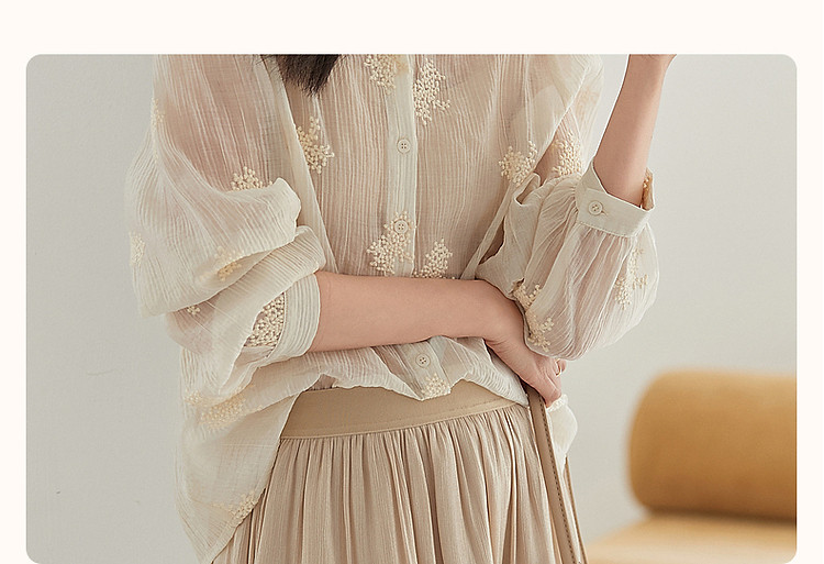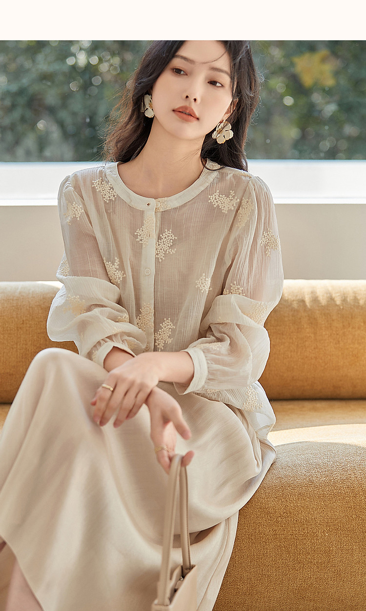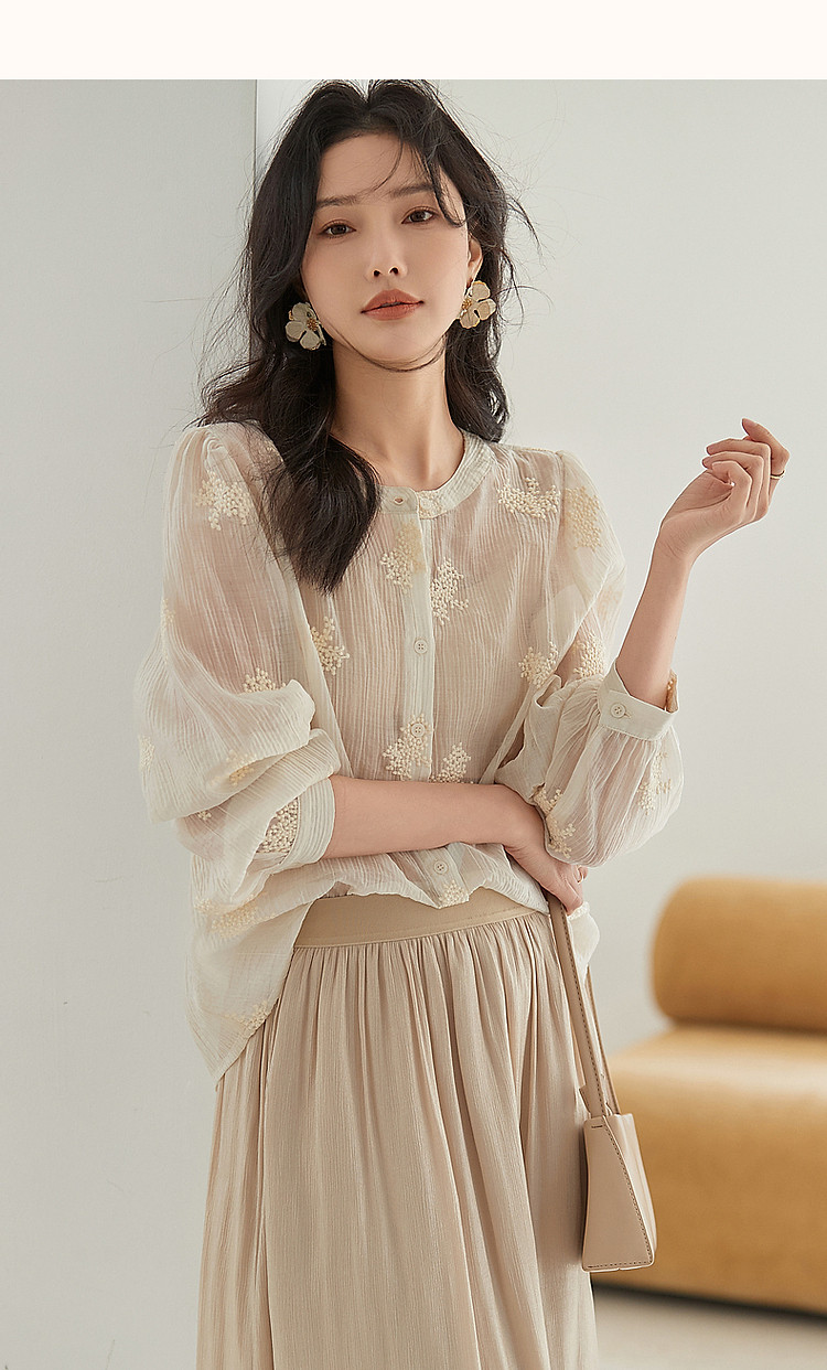 商品名称:【轻薄莱赛尔】春秋淑女刺绣褶皱衬衫泡泡袖小个子衬衣女装上衣 030913