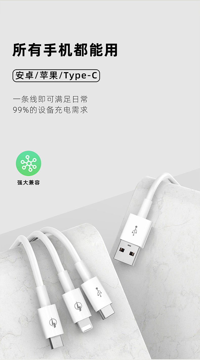 DP/久量10000mAh一拖三5A快充数据线YY-J16