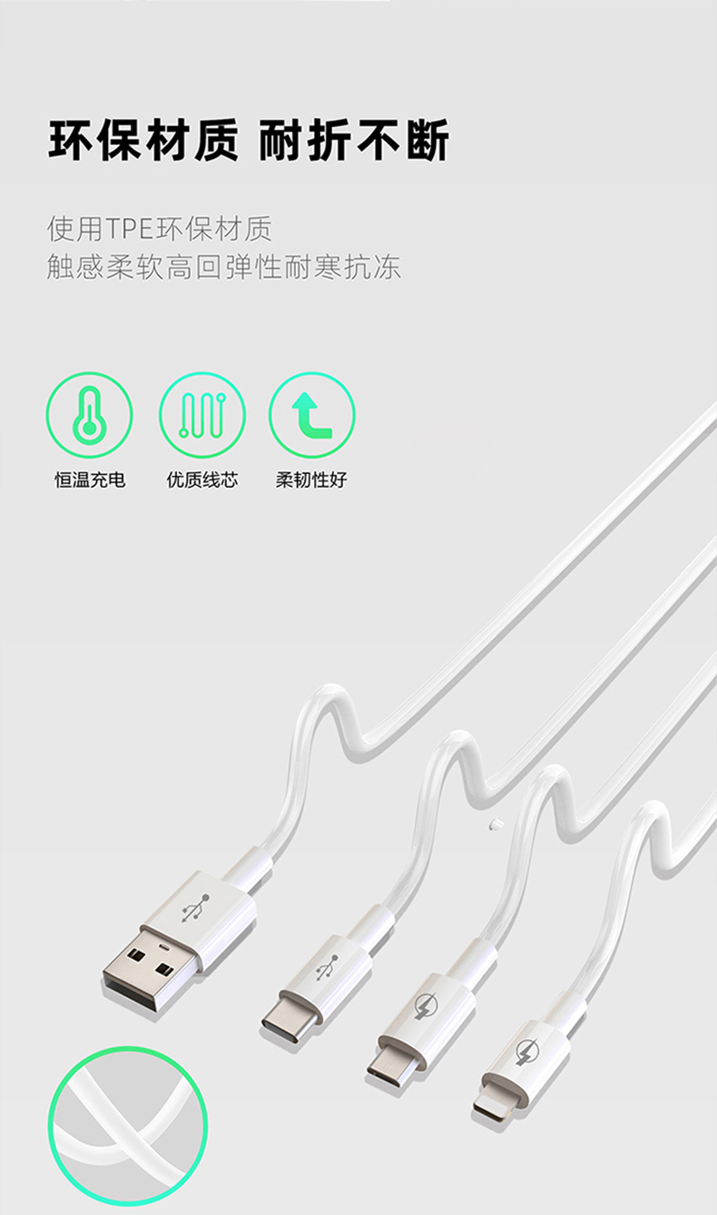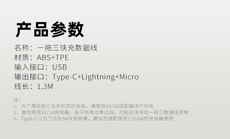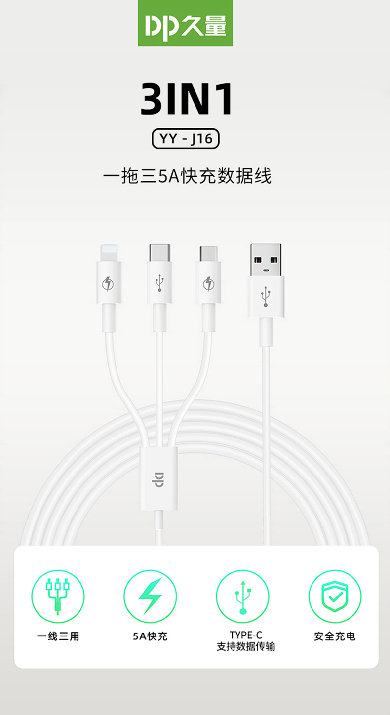 商品名称:DP/久量10000mAh一拖三5A快充数据线YY-J16