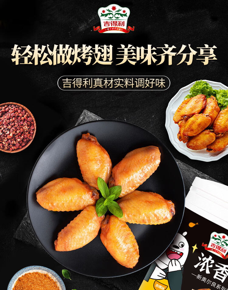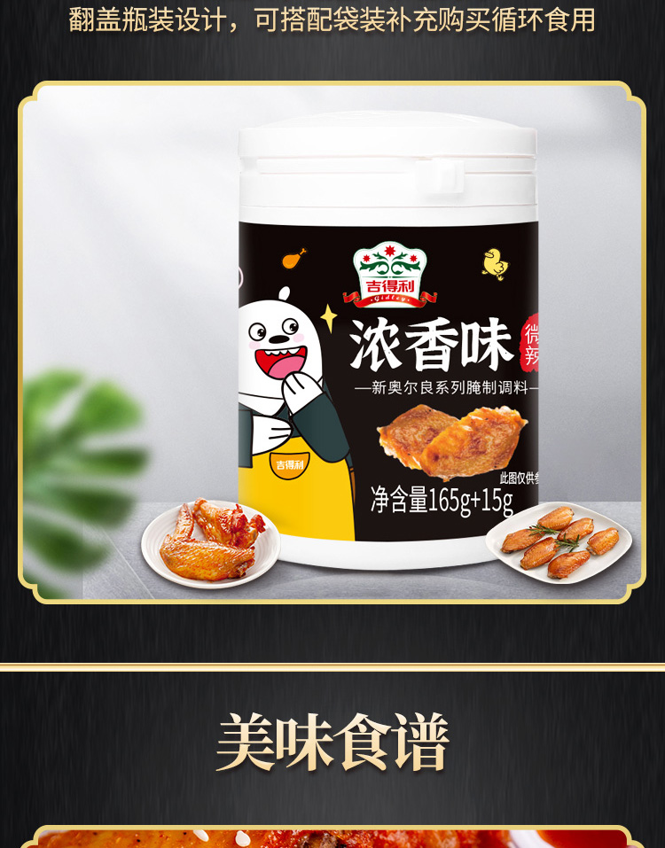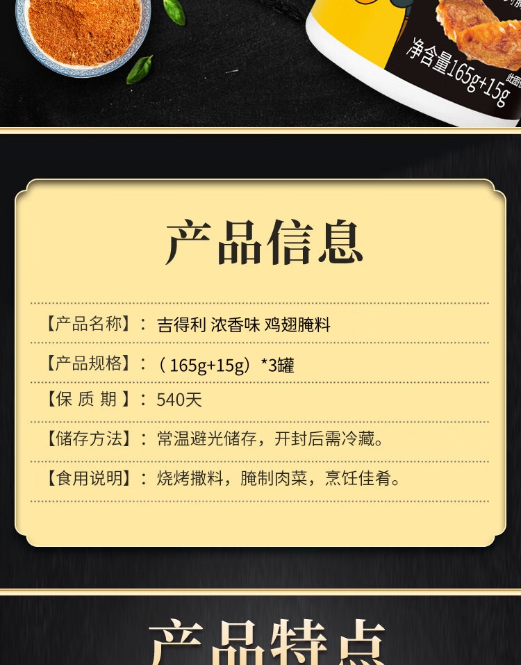 商品名称:吉得利浓香味鸡翅腌料180g*3罐