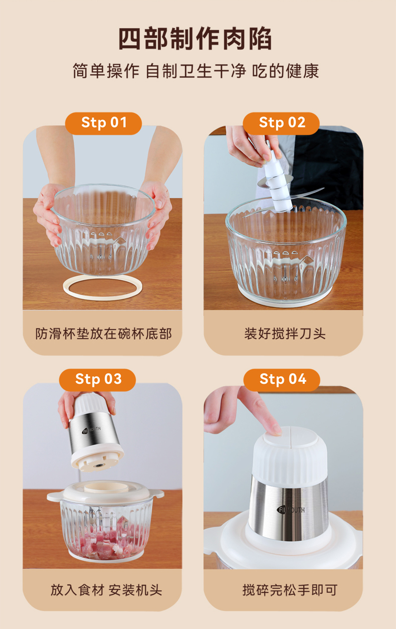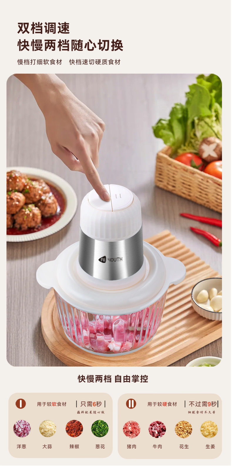 商品名称:AIYOUTH/艾青春升级款2升绞肉机-米白色IQC-J30A