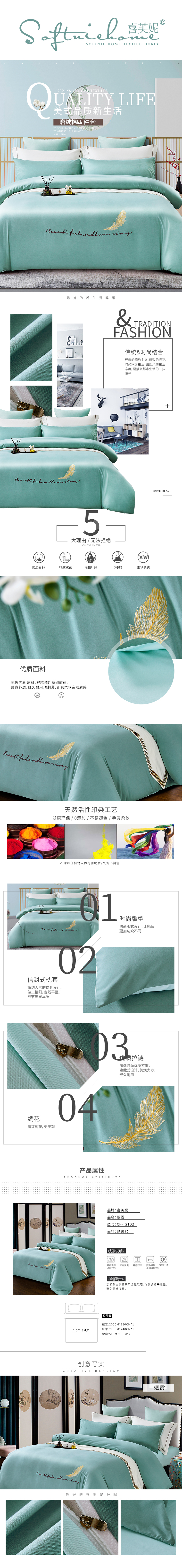 喜芙妮烟霞磨绒棉床品四件套200*230cm