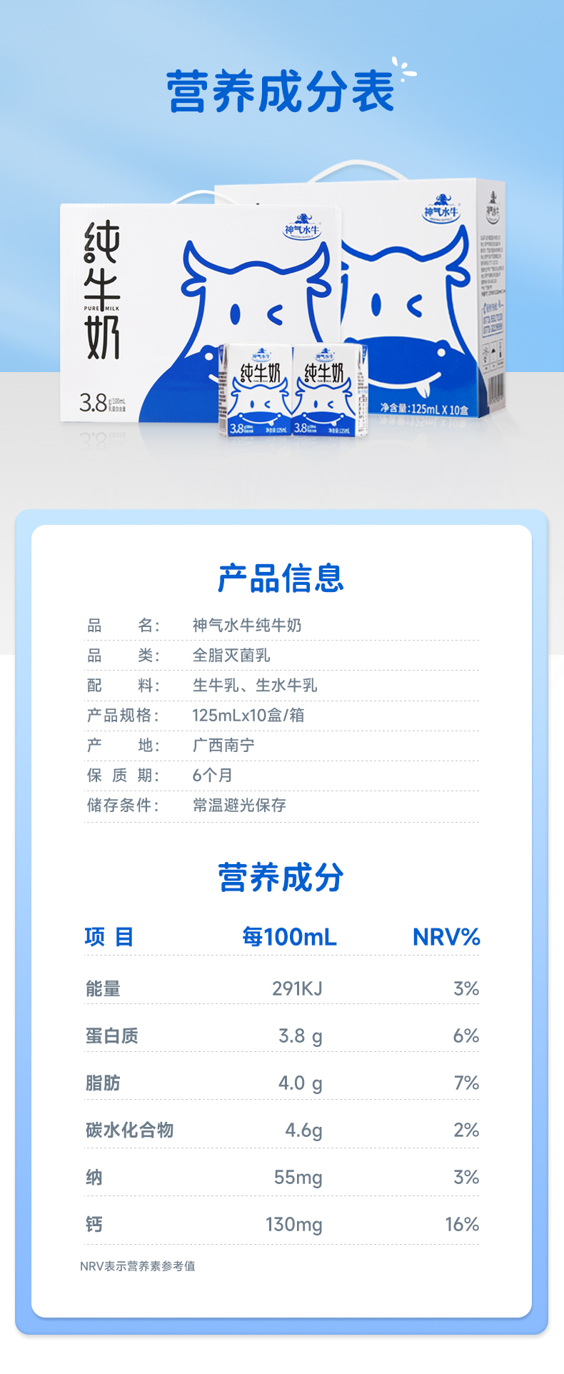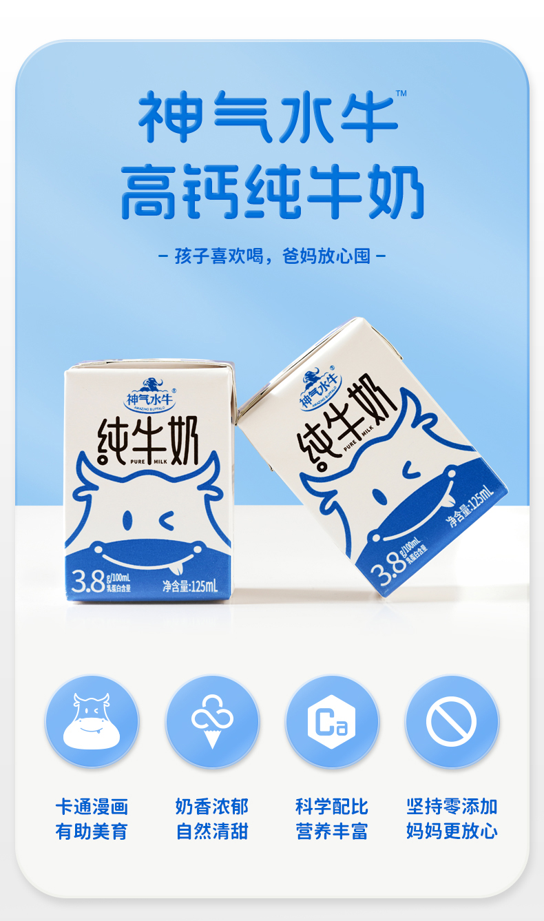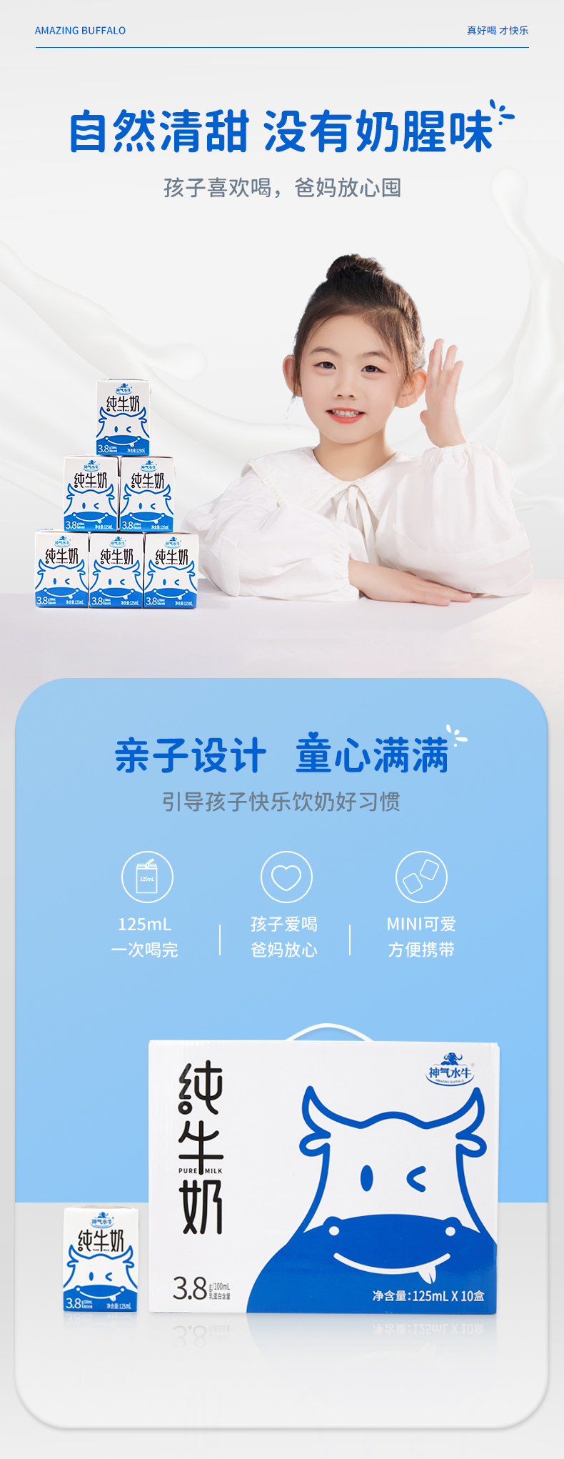 商品名称:神气水牛纯牛奶吸管装整箱125ml*10盒