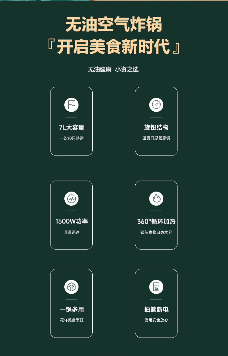 商品名称:hanle/翰乐7升空气炸锅机械版YM-06