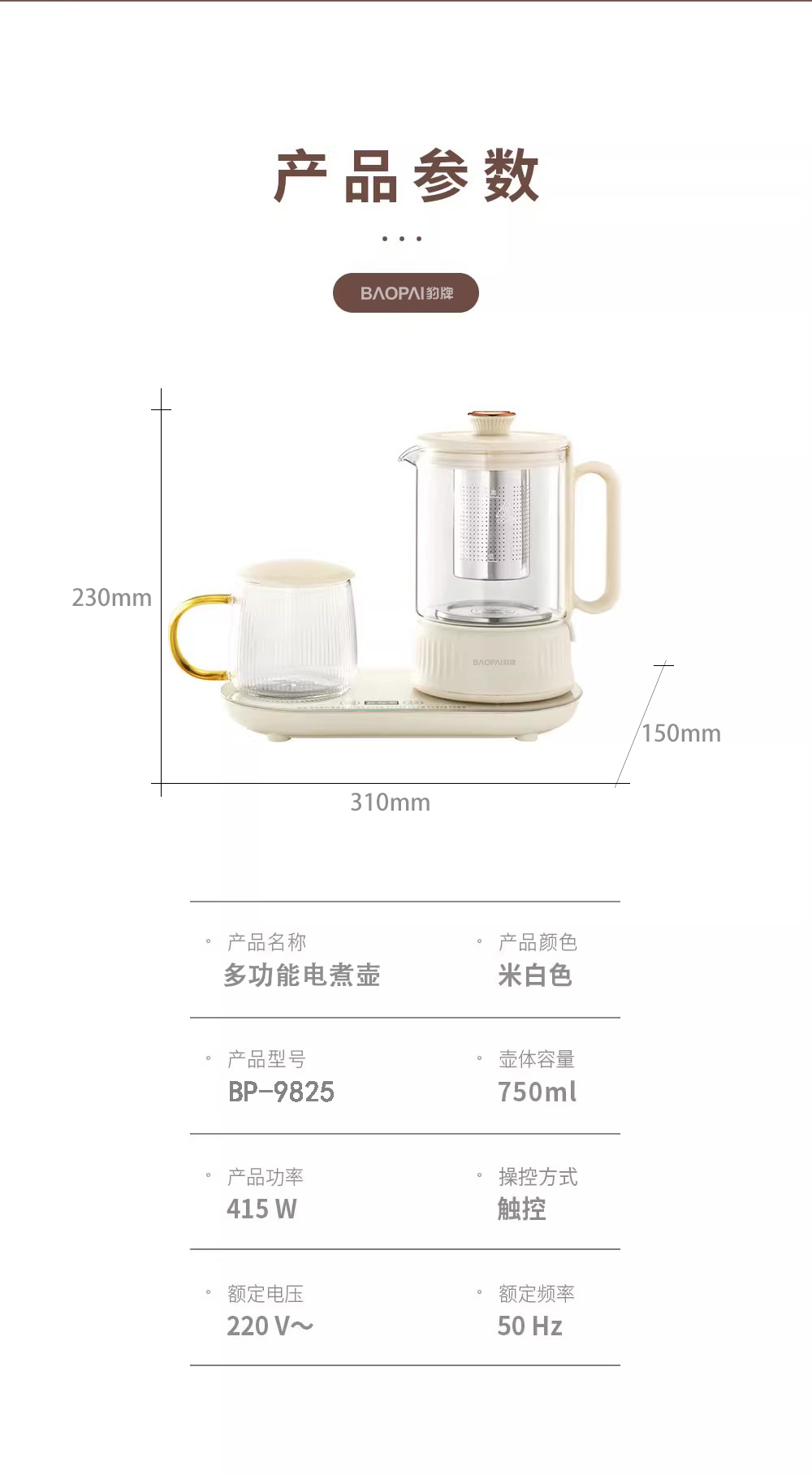 商品名称:BAOPAI/豹牌多功能电煮壶BP-9825